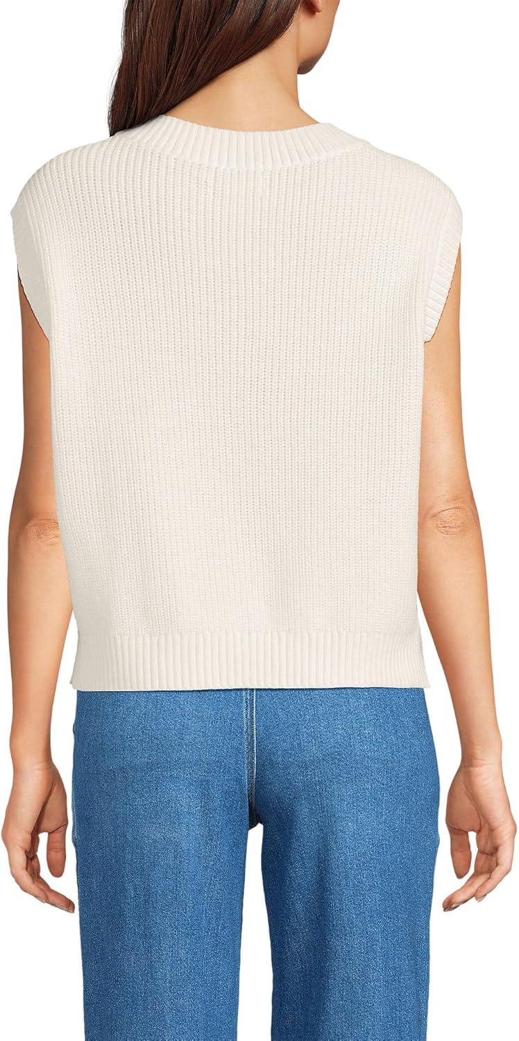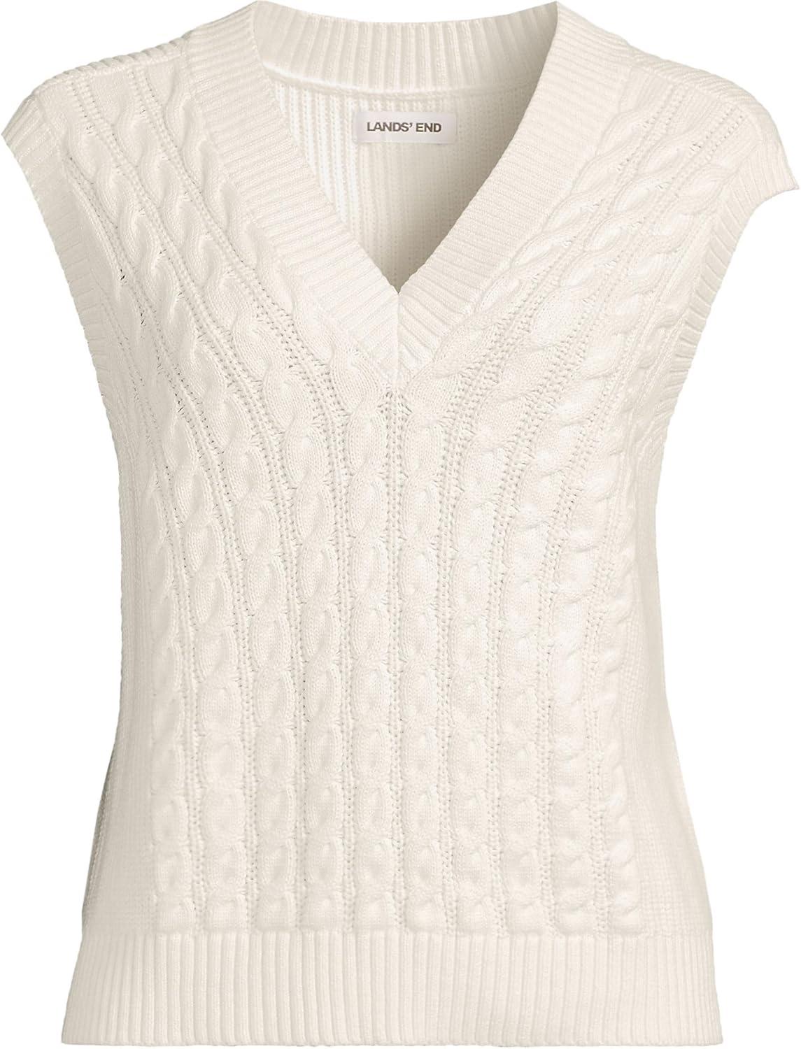 Lands’ End Women’s Drifter Modern Cable V Neck Vest Sweater(Fresh Ivory)