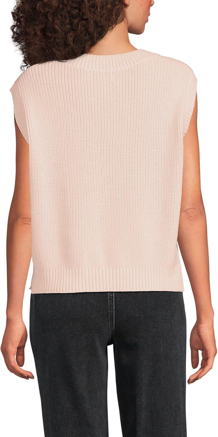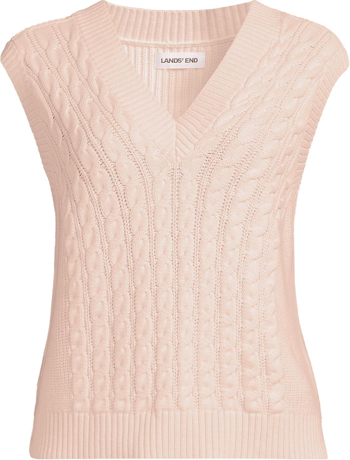 Lands’ End Women’s Drifter Modern Cable V Neck Vest Sweater(Pink Opal)