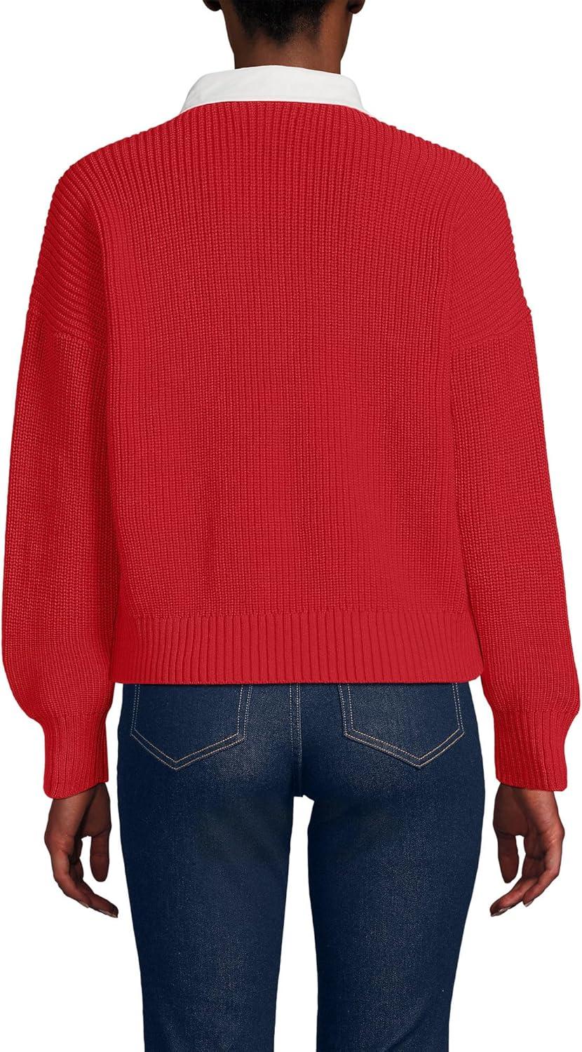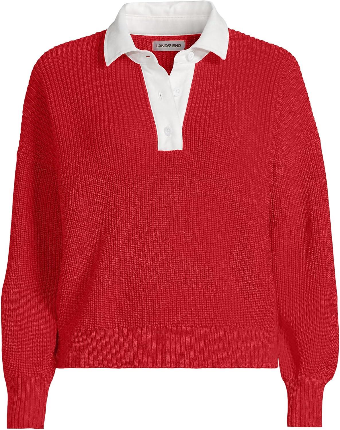 Lands’ End Women’s Drifter Rugby with Woven Collar Sweater(Compass Red)