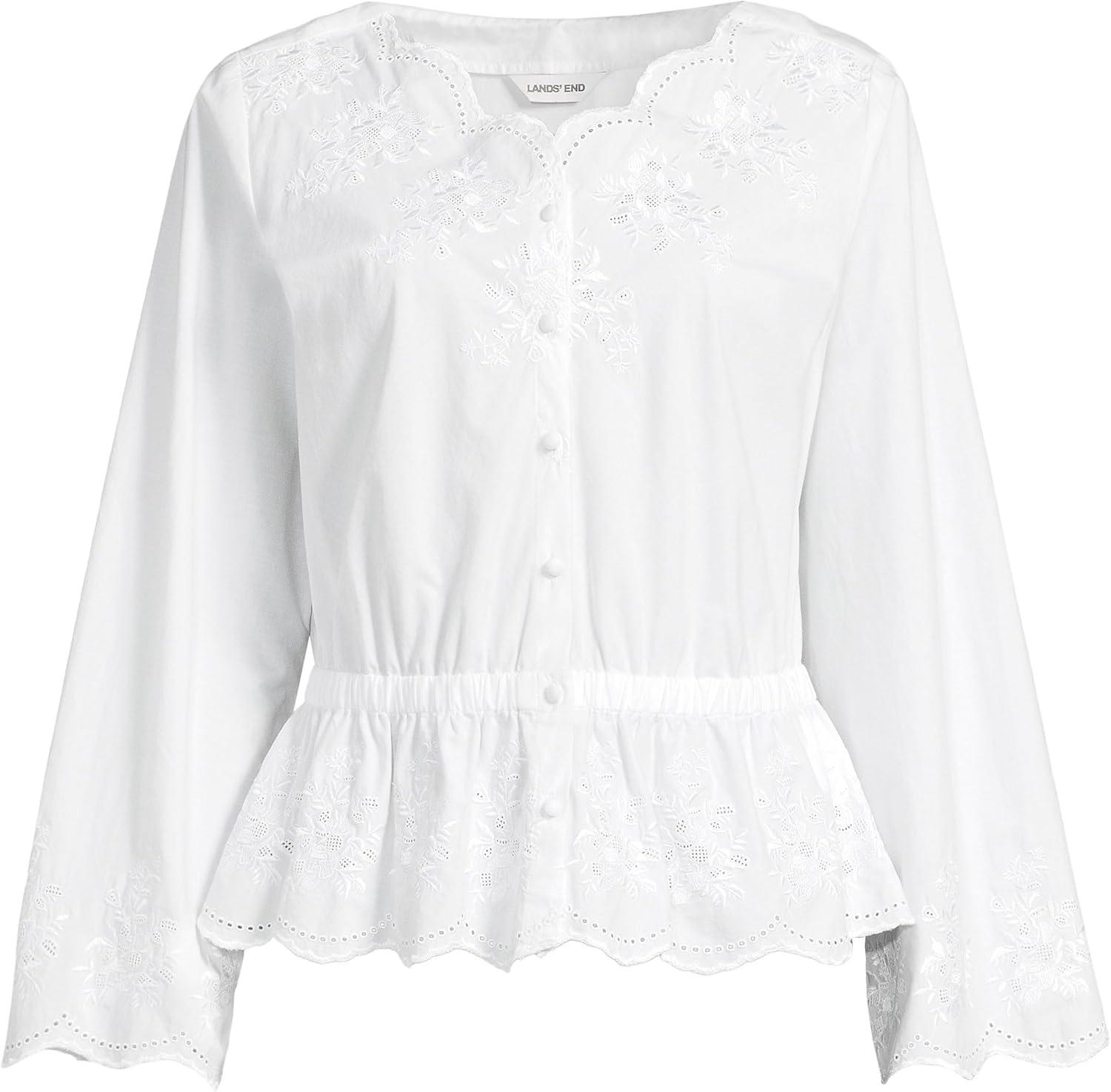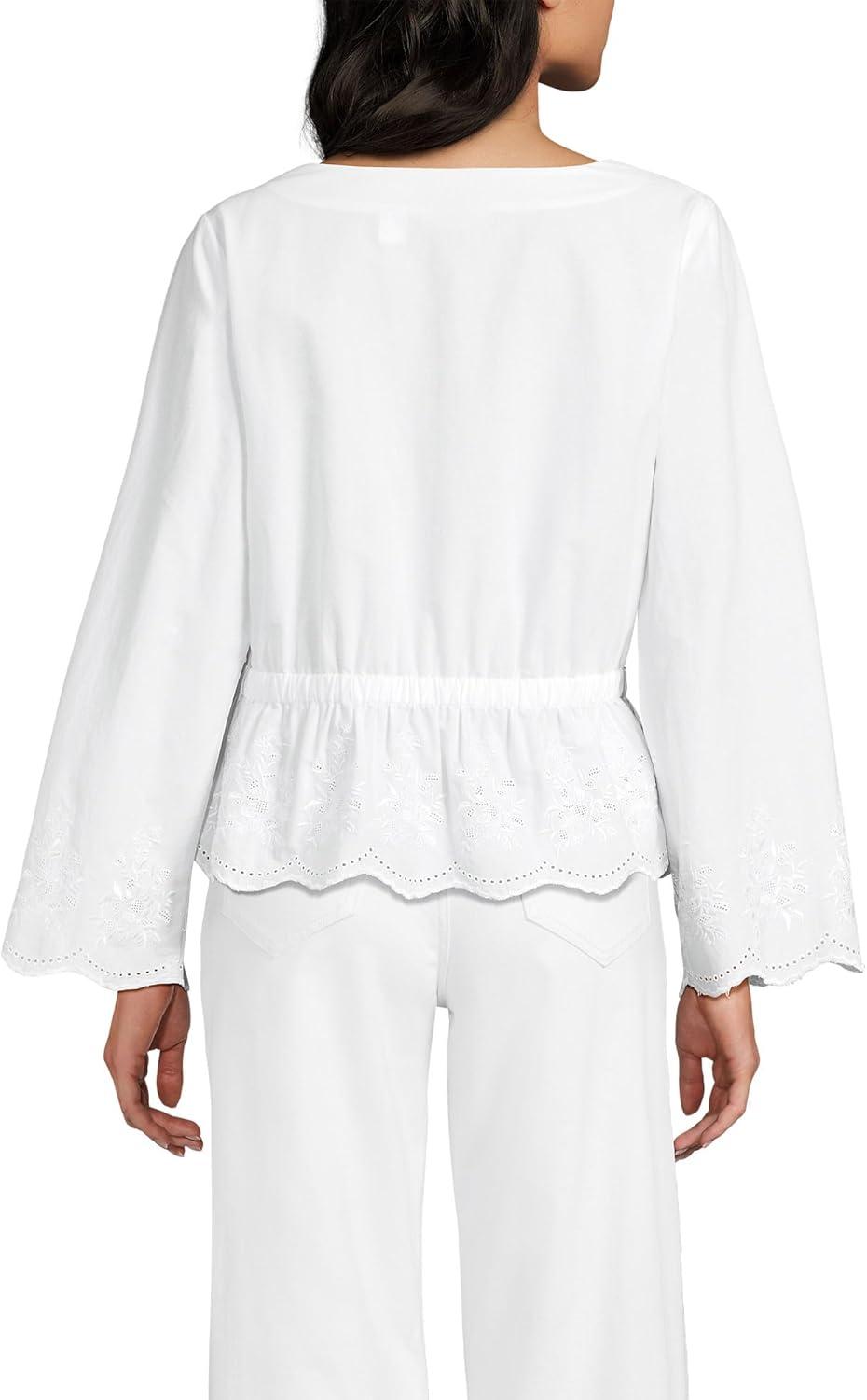 Lands’ End Women’s Embroidered Poplin Long Sleeve Blouse(White)