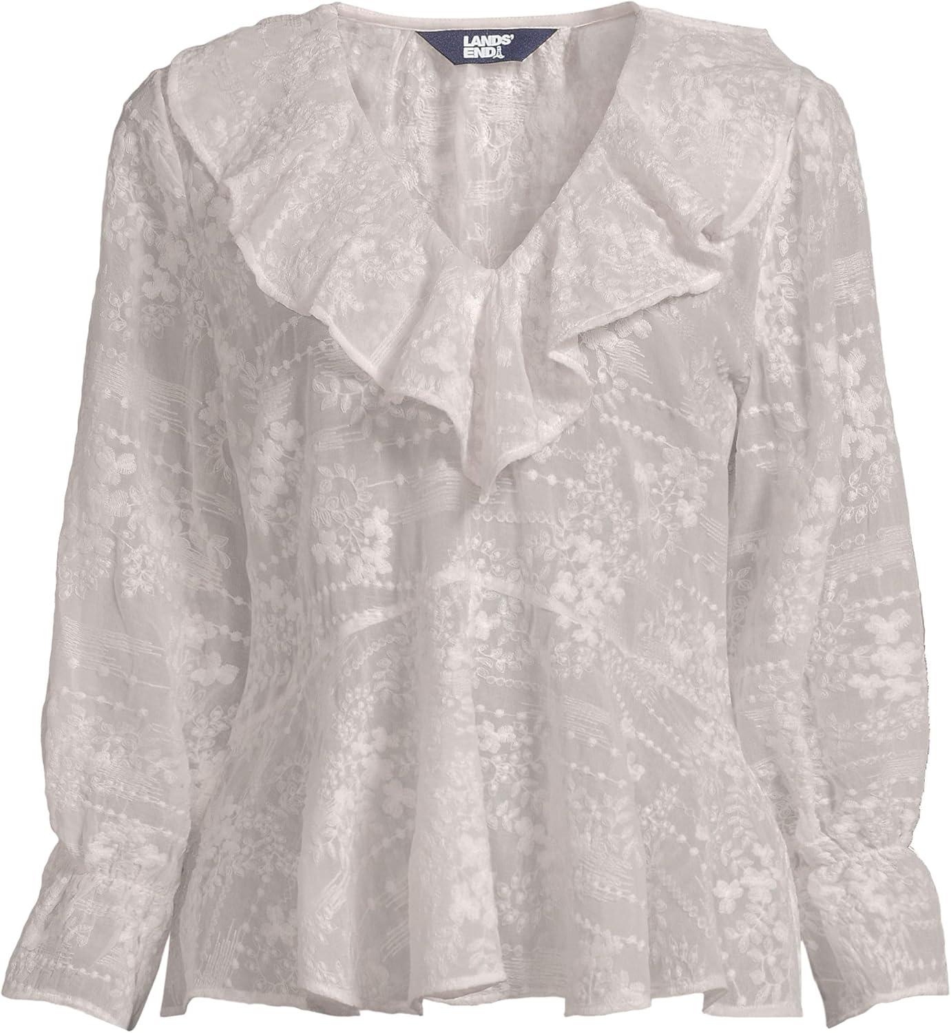 Lands’ End Women’s Feminine Ruffle Chiffon V Neck Blouse(Ivory)