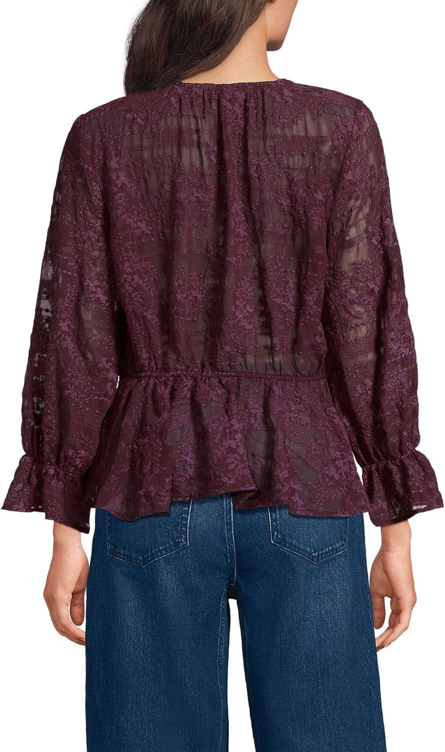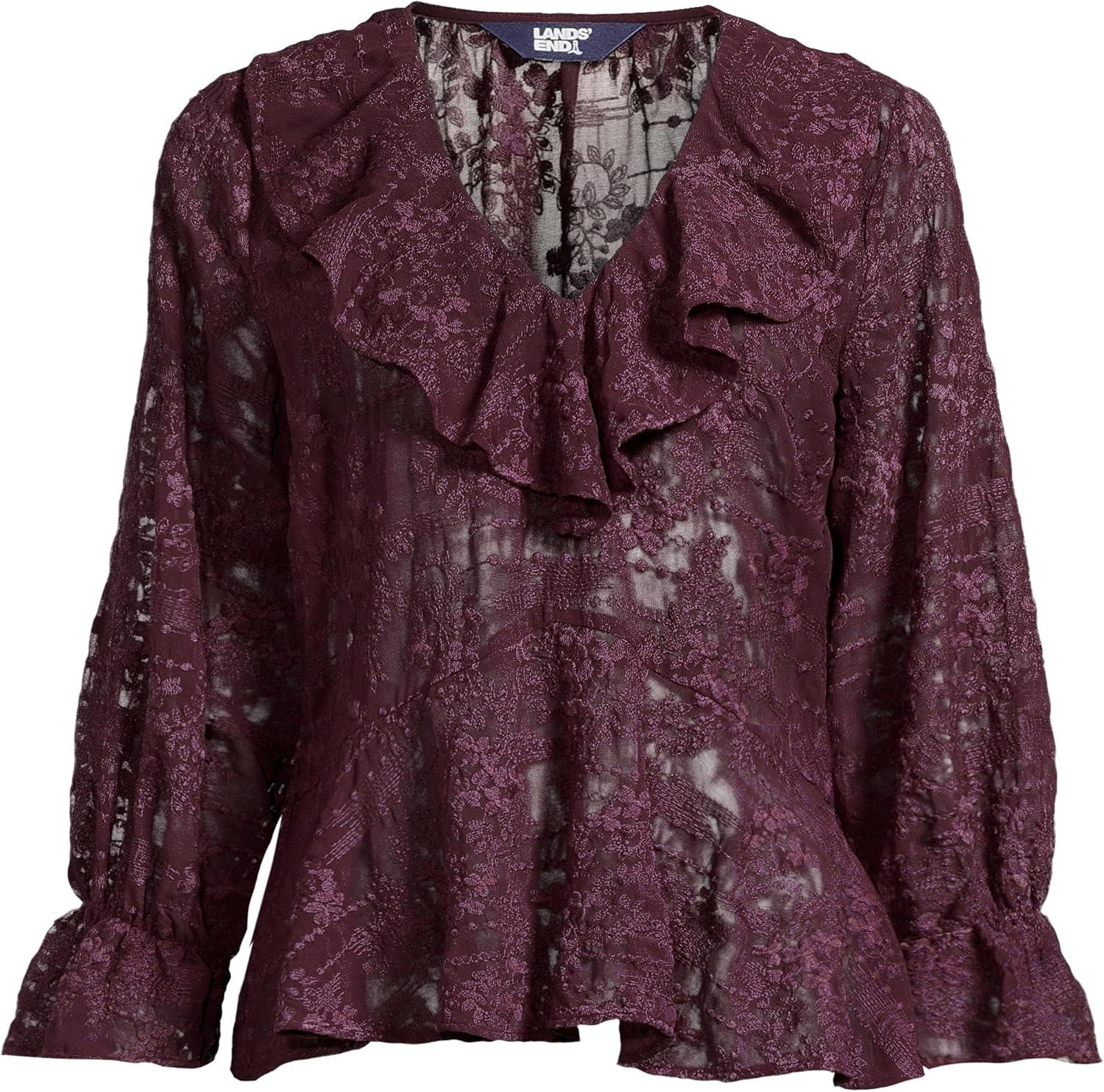 Lands’ End Women’s Feminine Ruffle Chiffon V Neck Blouse(Lush Burgundy)