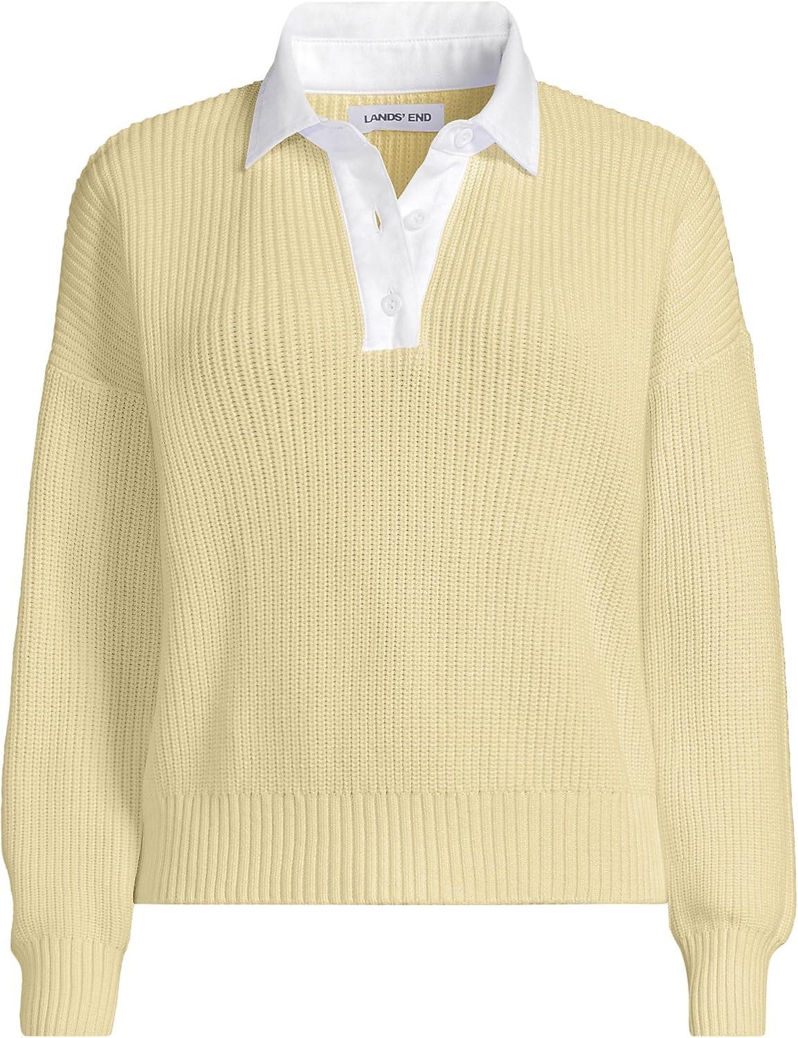 Lands’ End Women’s Drifter Rugby with Woven Collar Sweater(Pale Yellow)