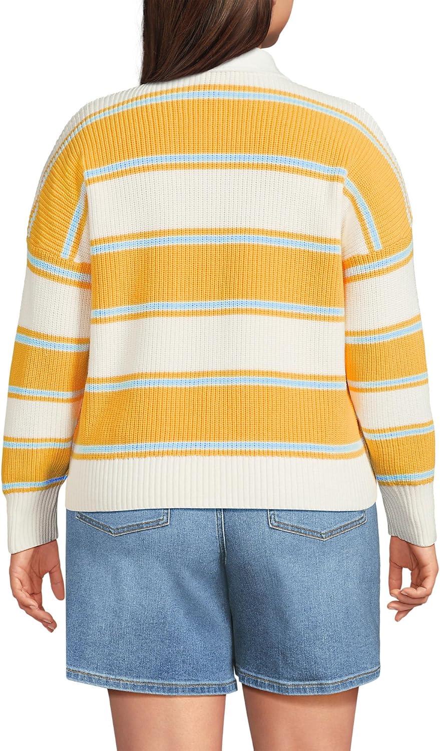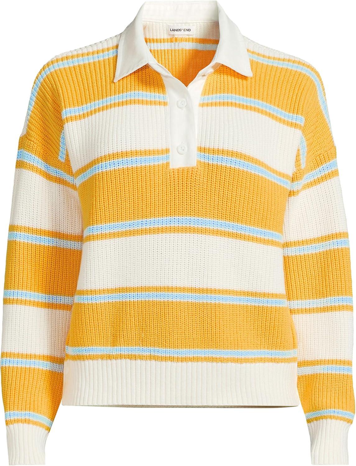Lands’ End Women’s Drifter Rugby with Woven Collar Sweater(Sunkissed Yellow Stripes)
