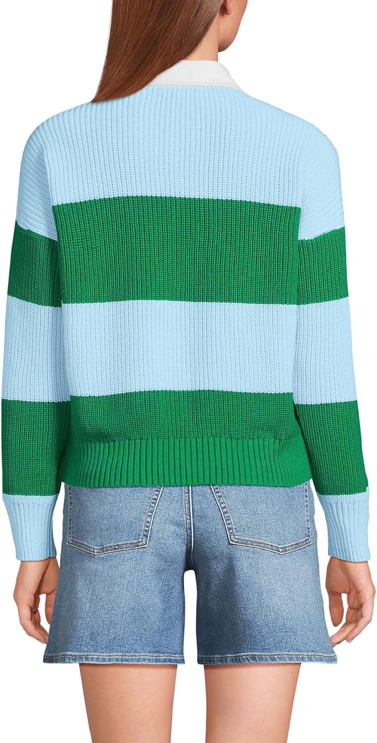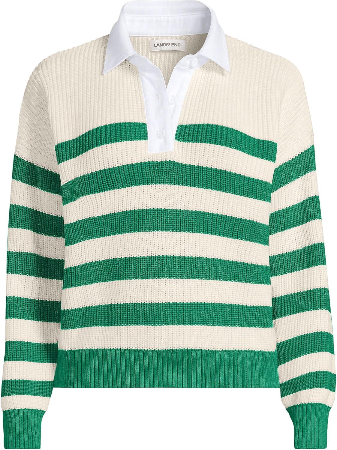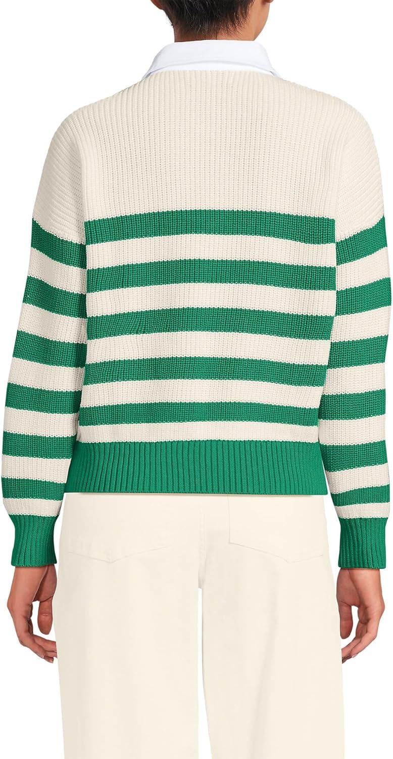 Lands’ End Women’s Drifter Rugby with Woven Collar Sweater(Vibrant Clover Stripe)
