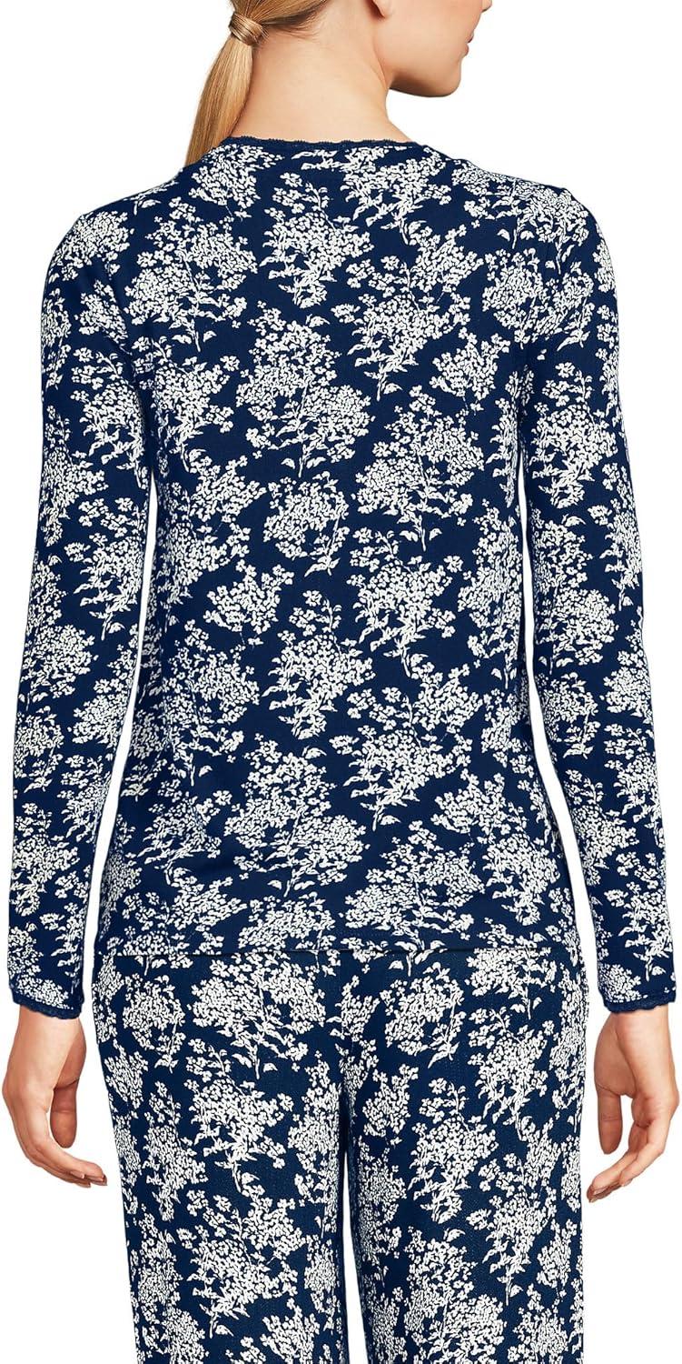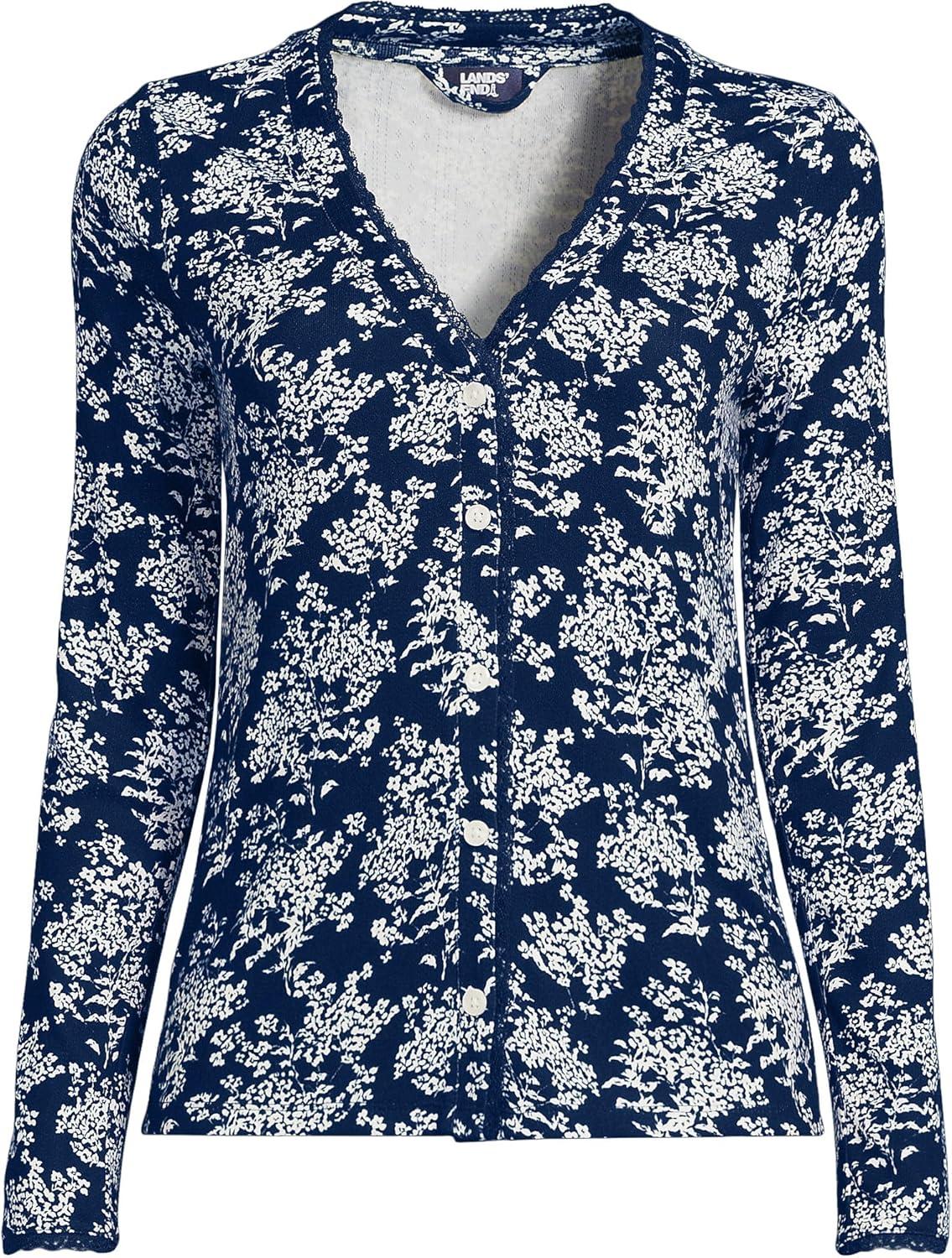Lands’ End Women’s Pointelle Long Sleeve Sleep Cardigan(Deep Sea Ikat Floral)