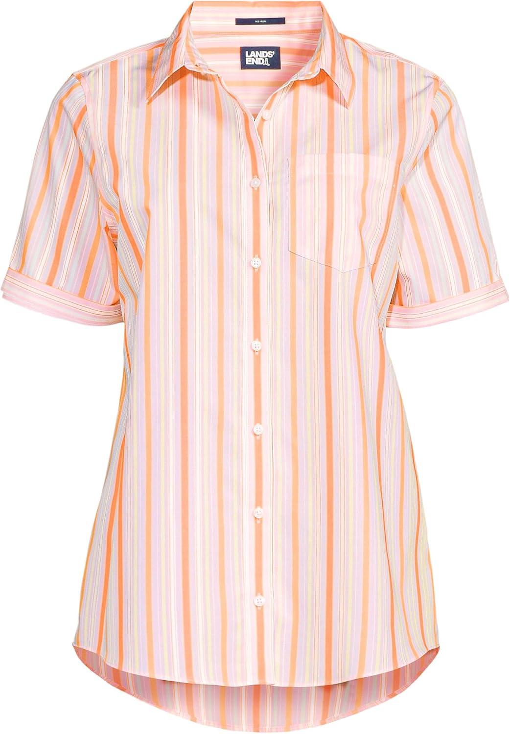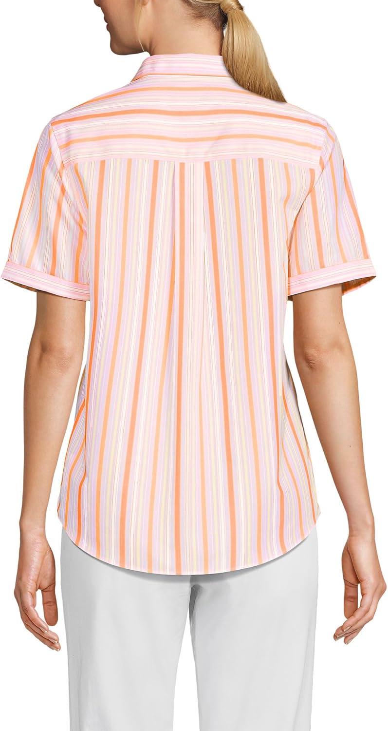 Lands’ End Women’s Short Sleeve No Iron Shirt(Crisp Peach Multi Stripe)