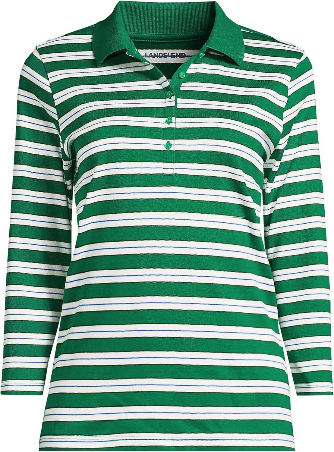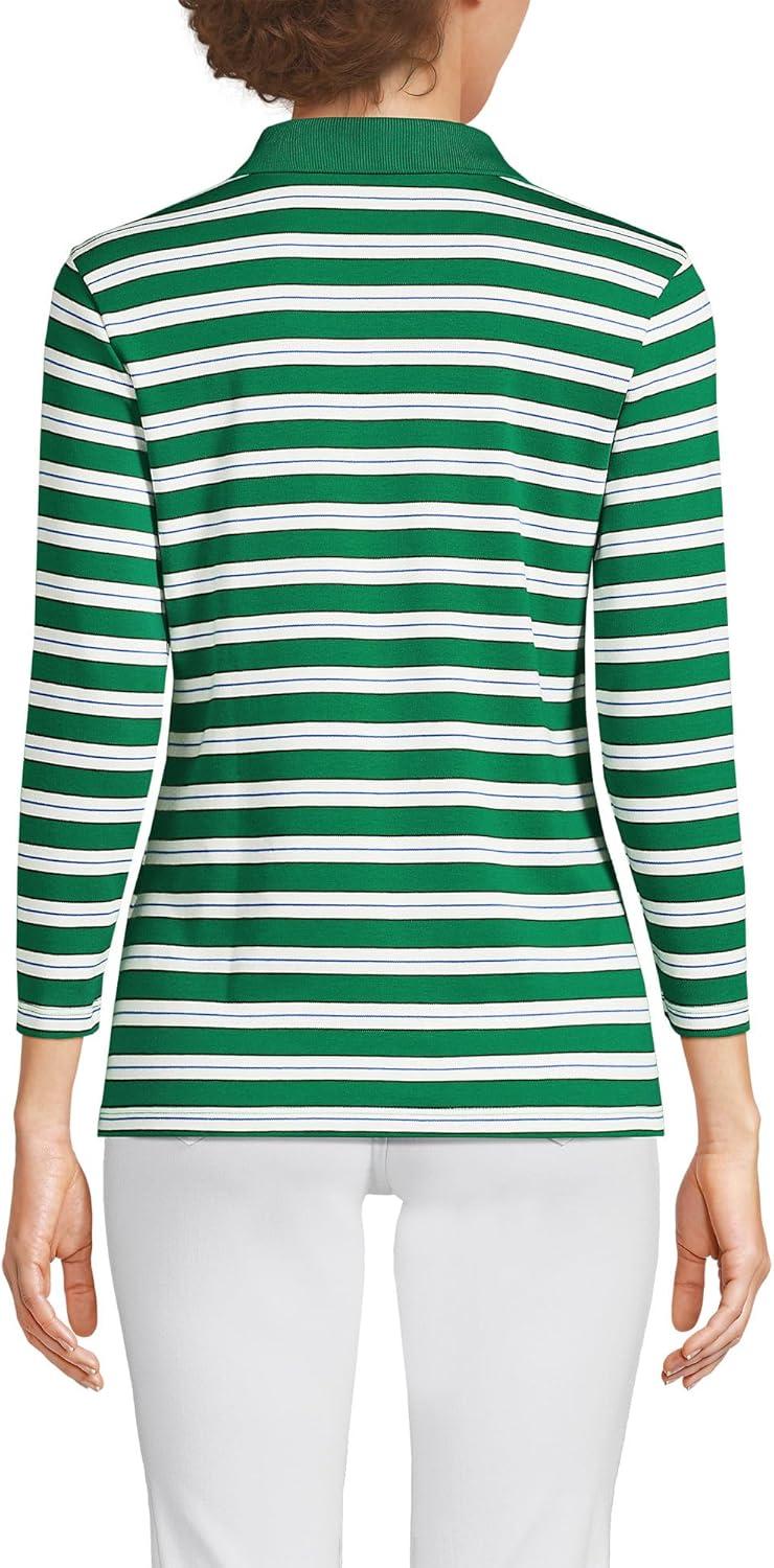 Lands’ End Women’s 3/4 Sleeve American-Grown Supima Cotton Polo Shirt(Vibrant Clover Multi Stripe)