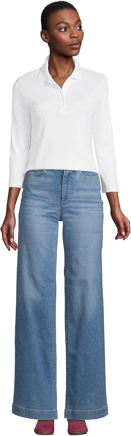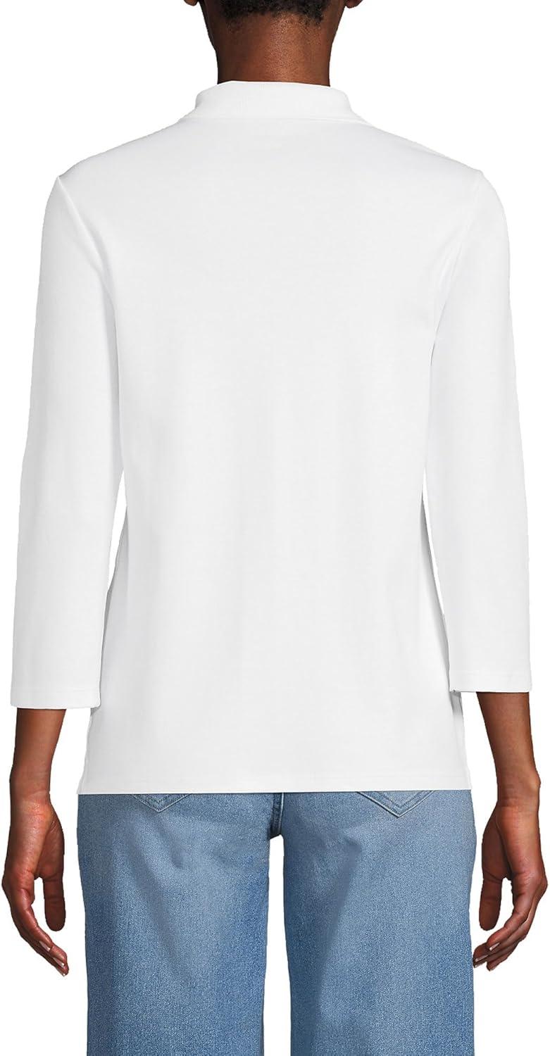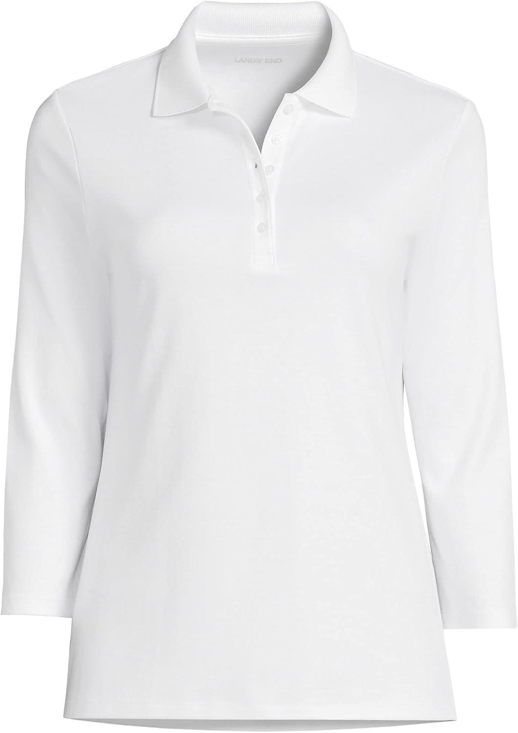 Lands’ End Women’s 3/4 Sleeve American-Grown Supima Cotton Polo Shirt(White)