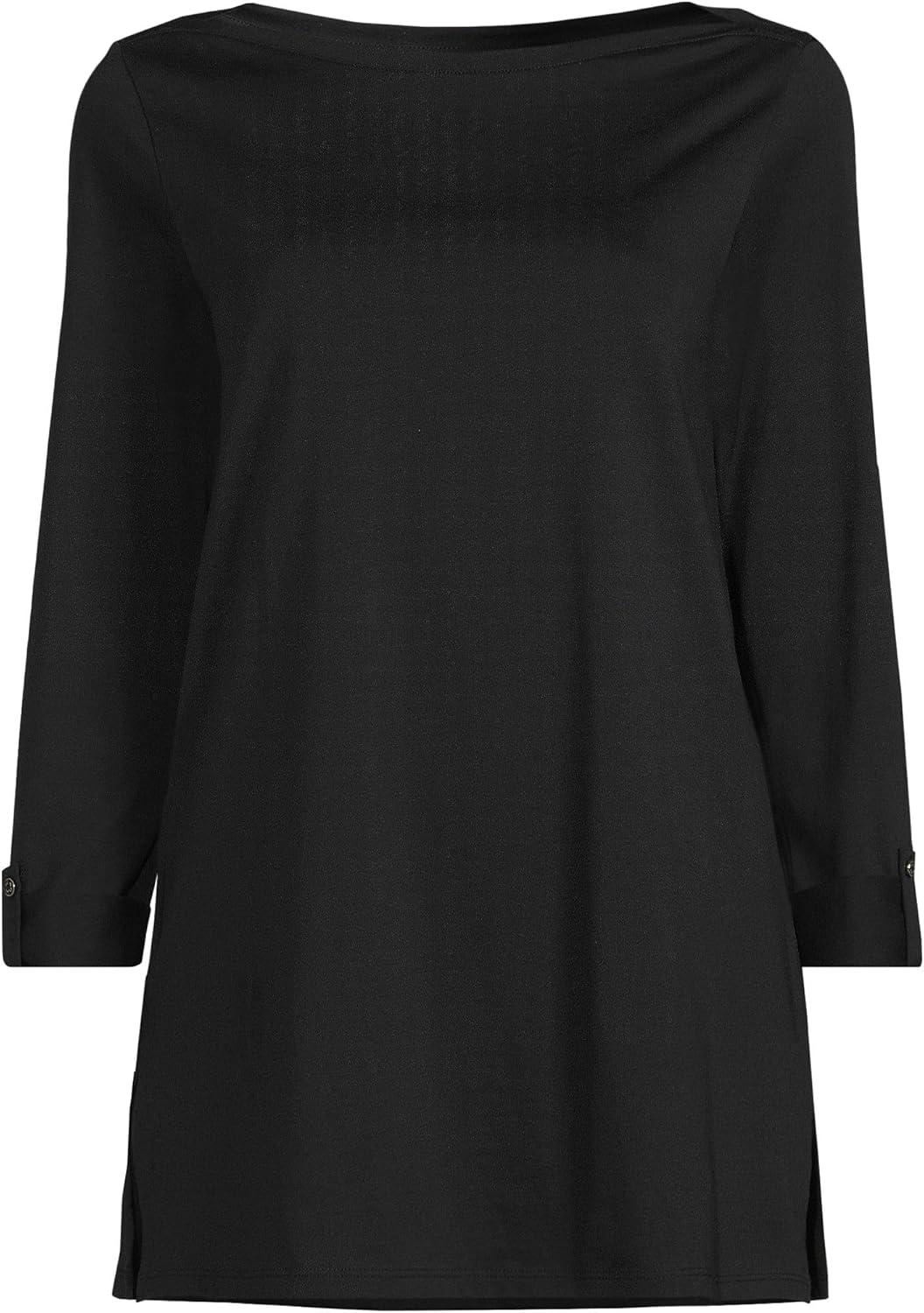 Lands’ End Women’s American-Grown Supima Cotton Adjustable 3/4 Sleeve Boatneck Tunic(Black)