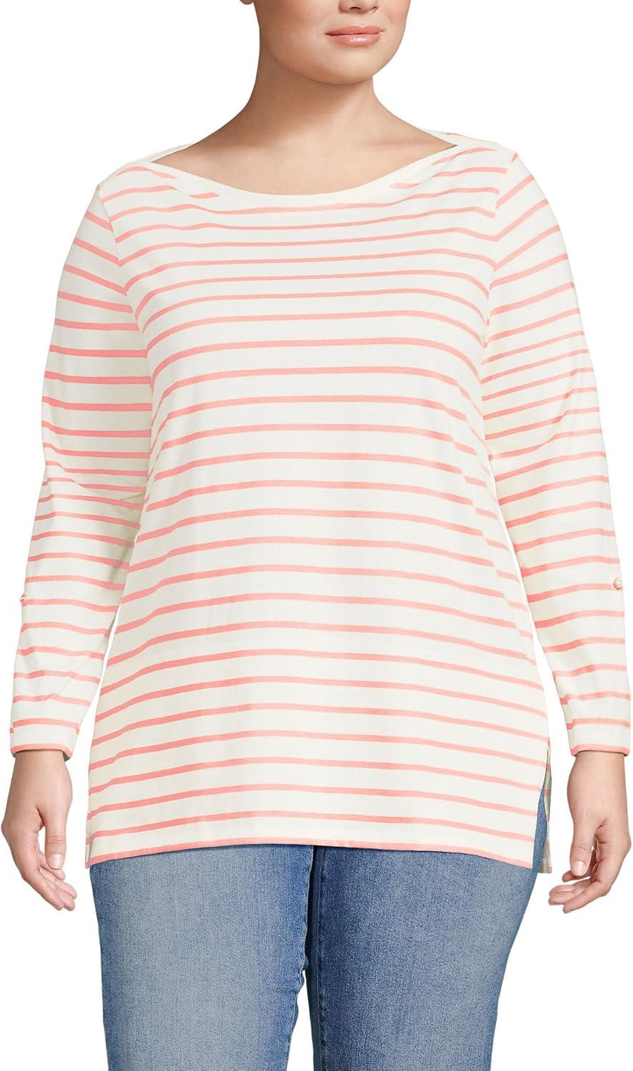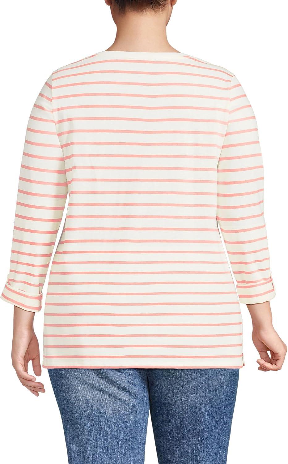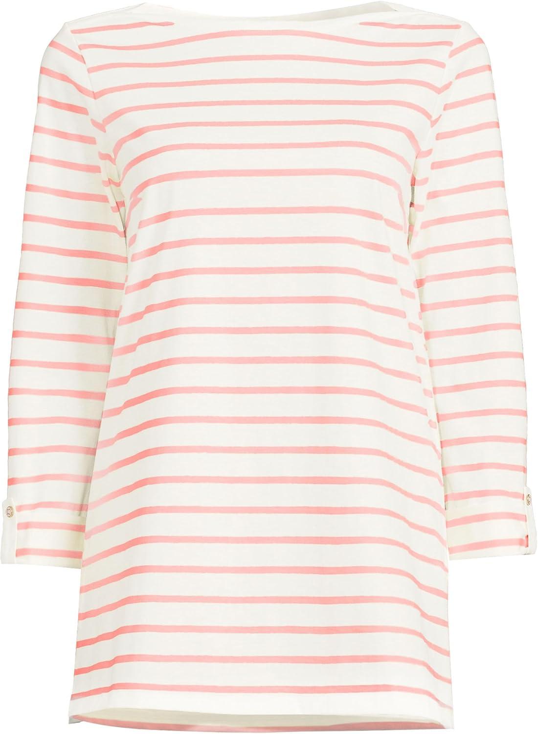 Lands’ End Women’s American-Grown Supima Cotton Adjustable 3/4 Sleeve Boatneck Tunic(Ivory/Peach Breton Stripe)