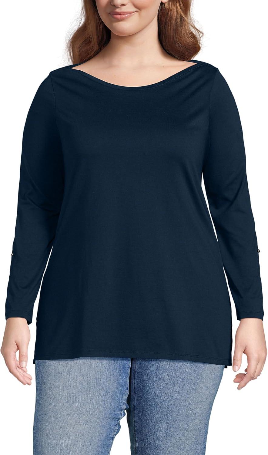 Lands’ End Women’s American-Grown Supima Cotton Adjustable 3/4 Sleeve Boatneck Tunic(Radiant Navy)