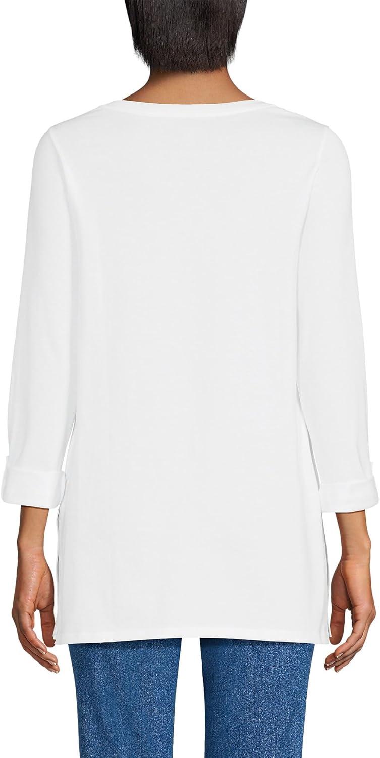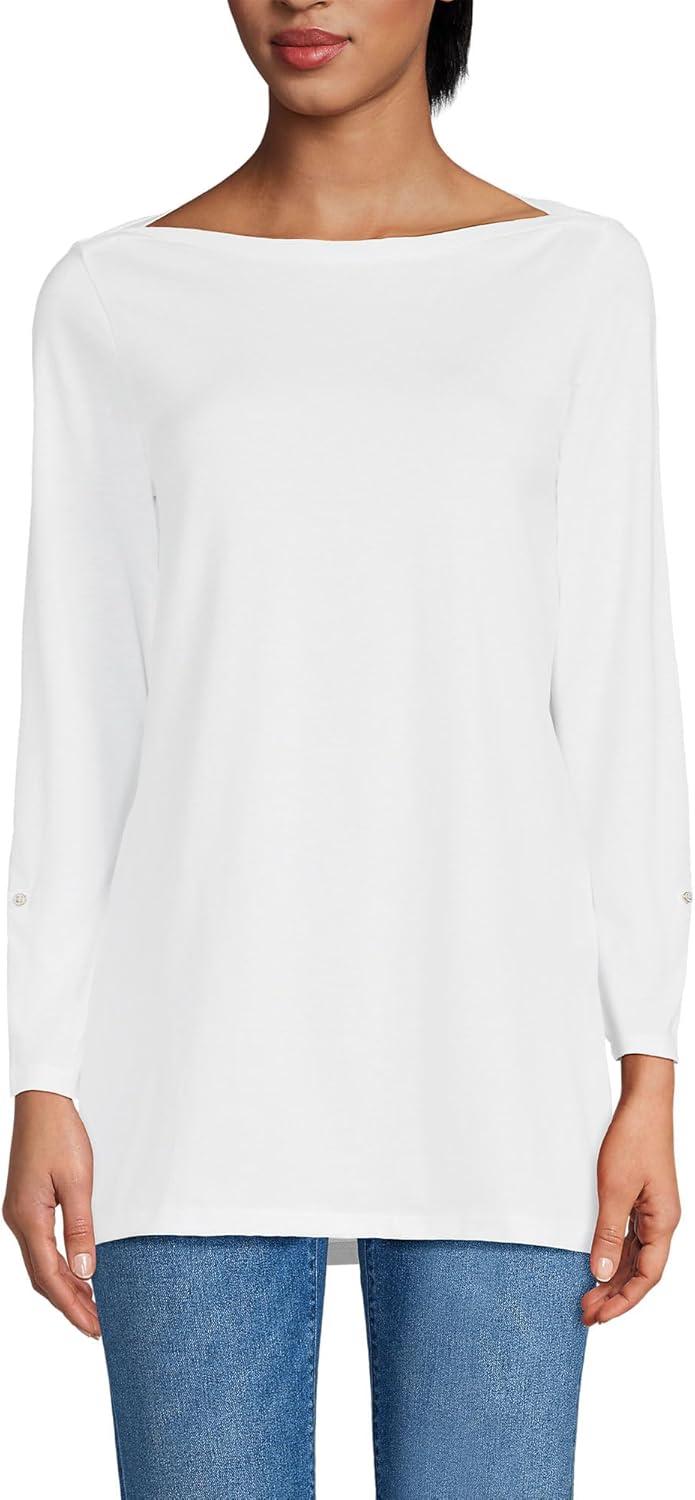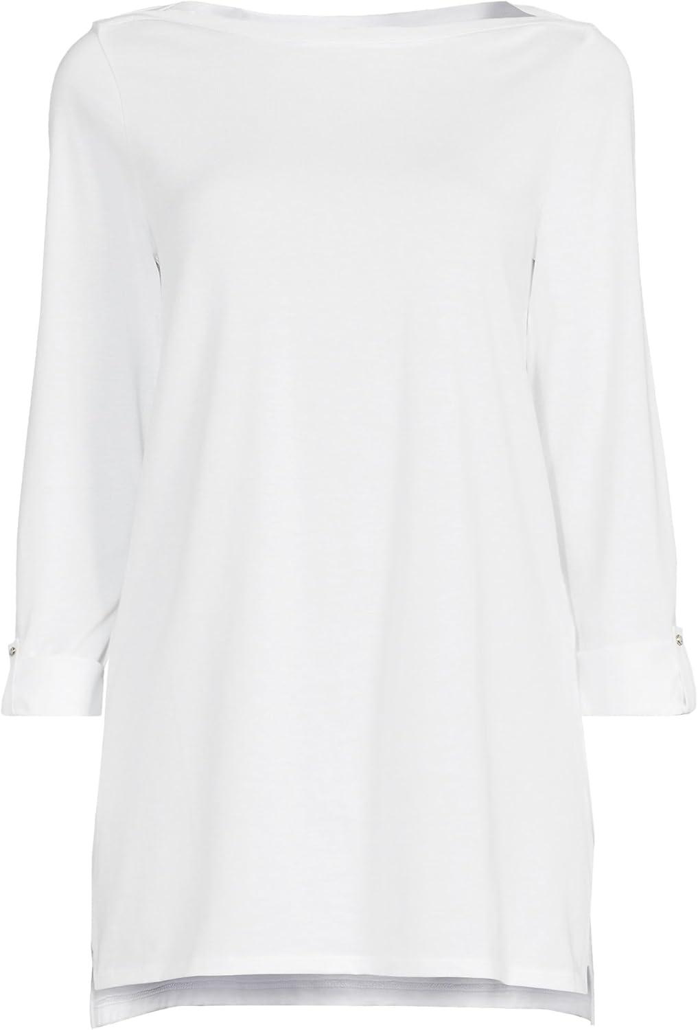 Lands’ End Women’s American-Grown Supima Cotton Adjustable 3/4 Sleeve Boatneck Tunic(White)