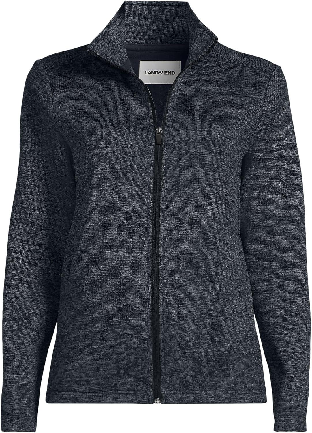 Lands’ End Women’s Sweater Fleece Jacket(Classic Navy Muted Heather)