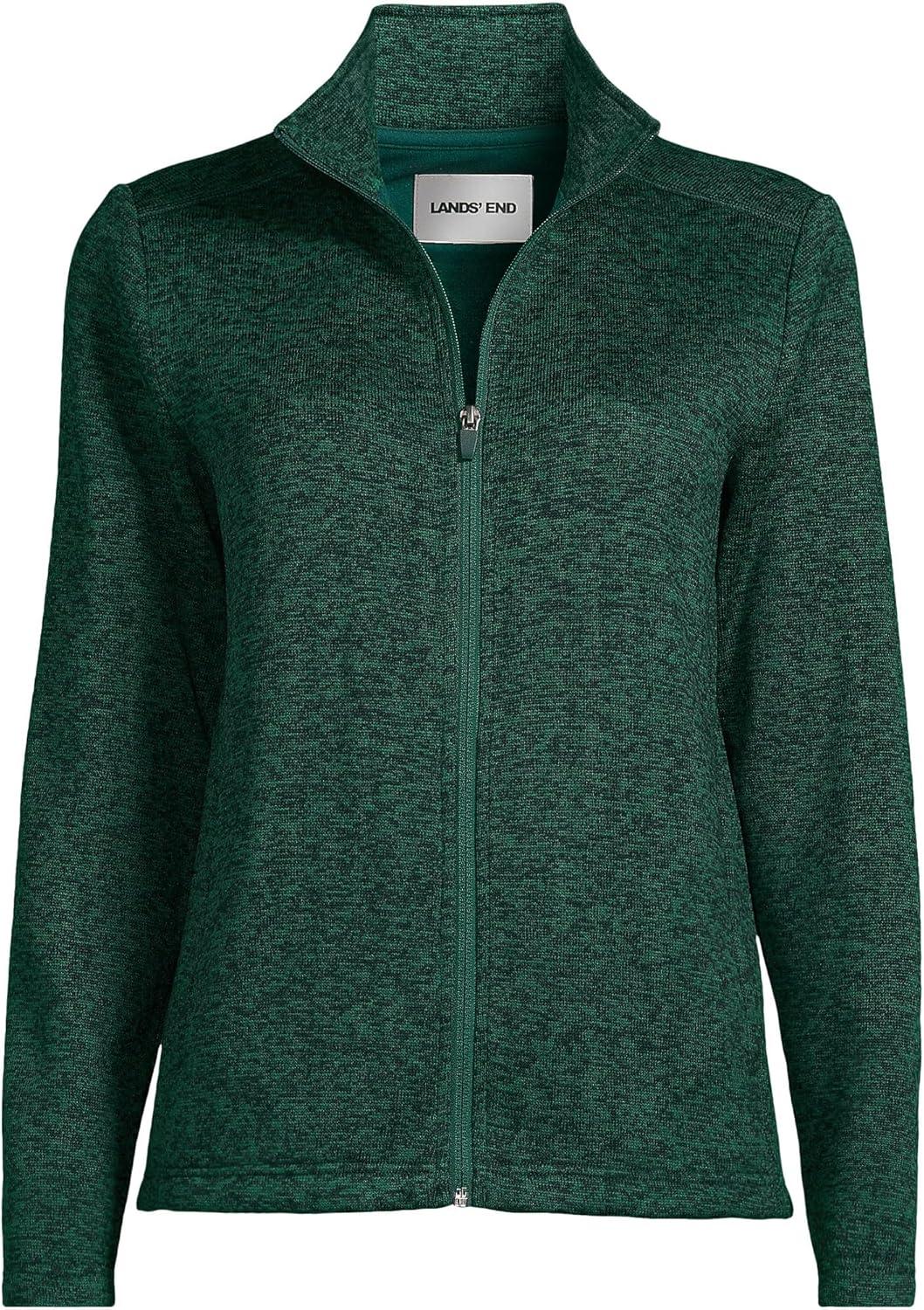 Lands’ End Women’s Sweater Fleece Jacket(Evergreen Heather)