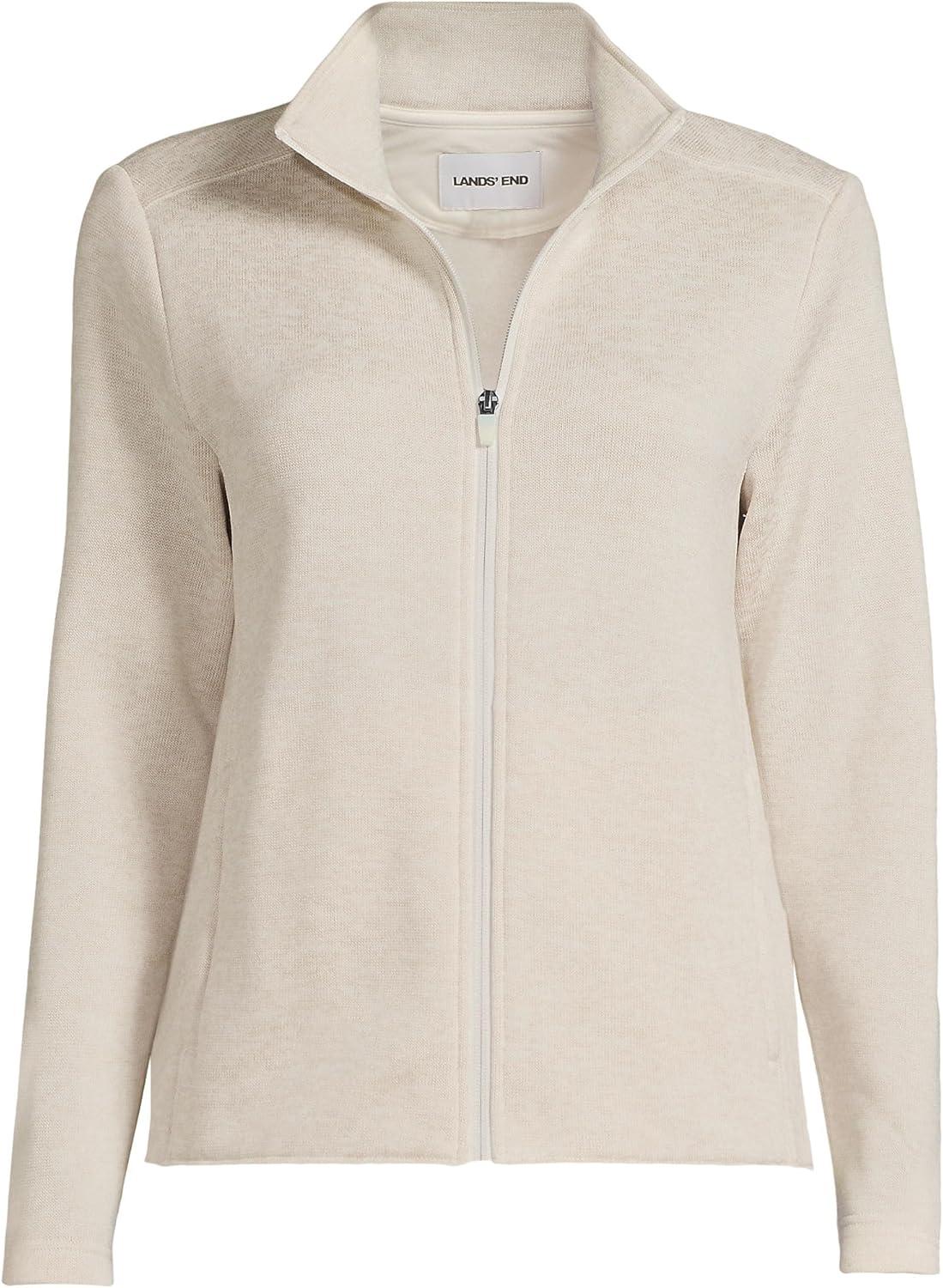 Lands’ End Women’s Sweater Fleece Jacket(Ivory Sand Heather)