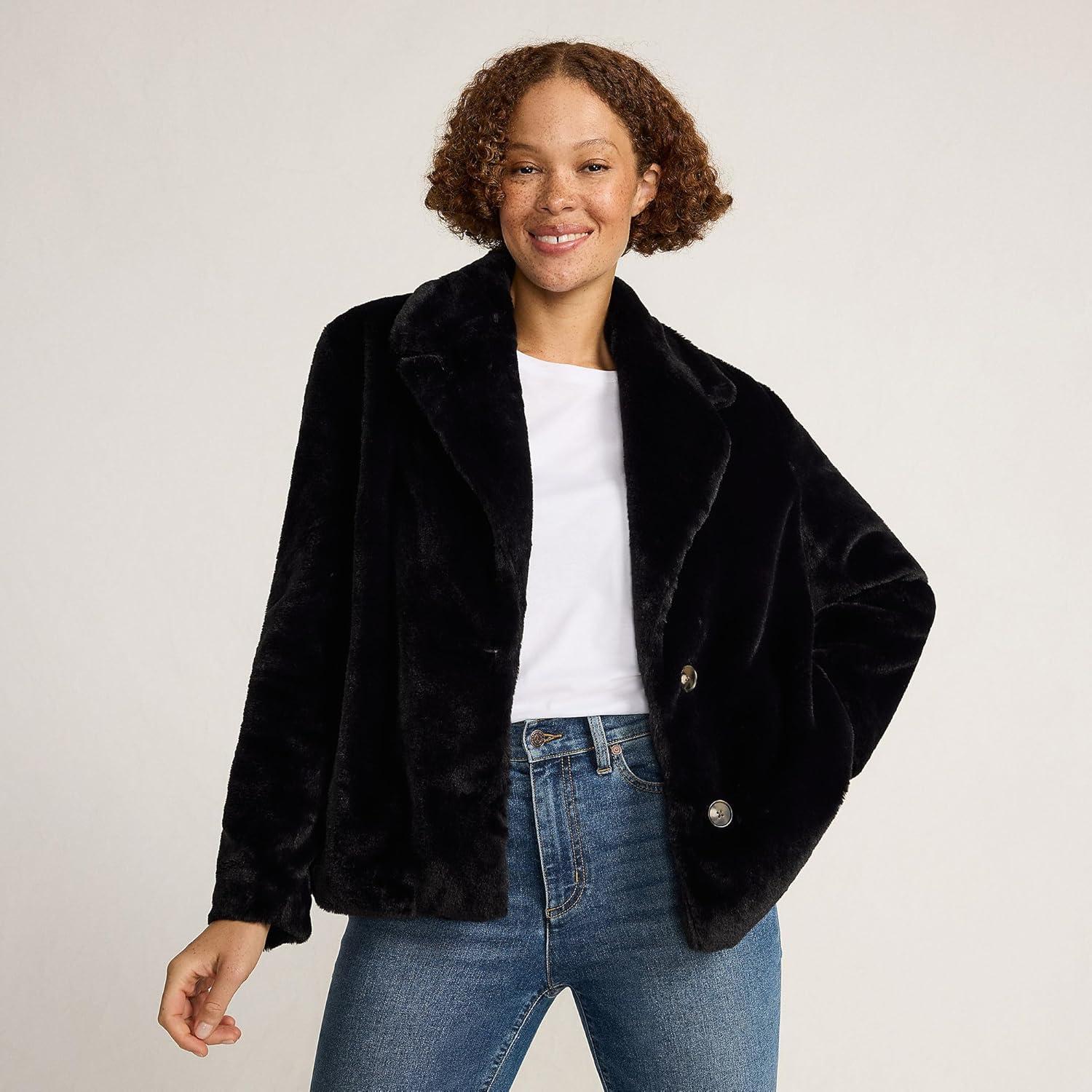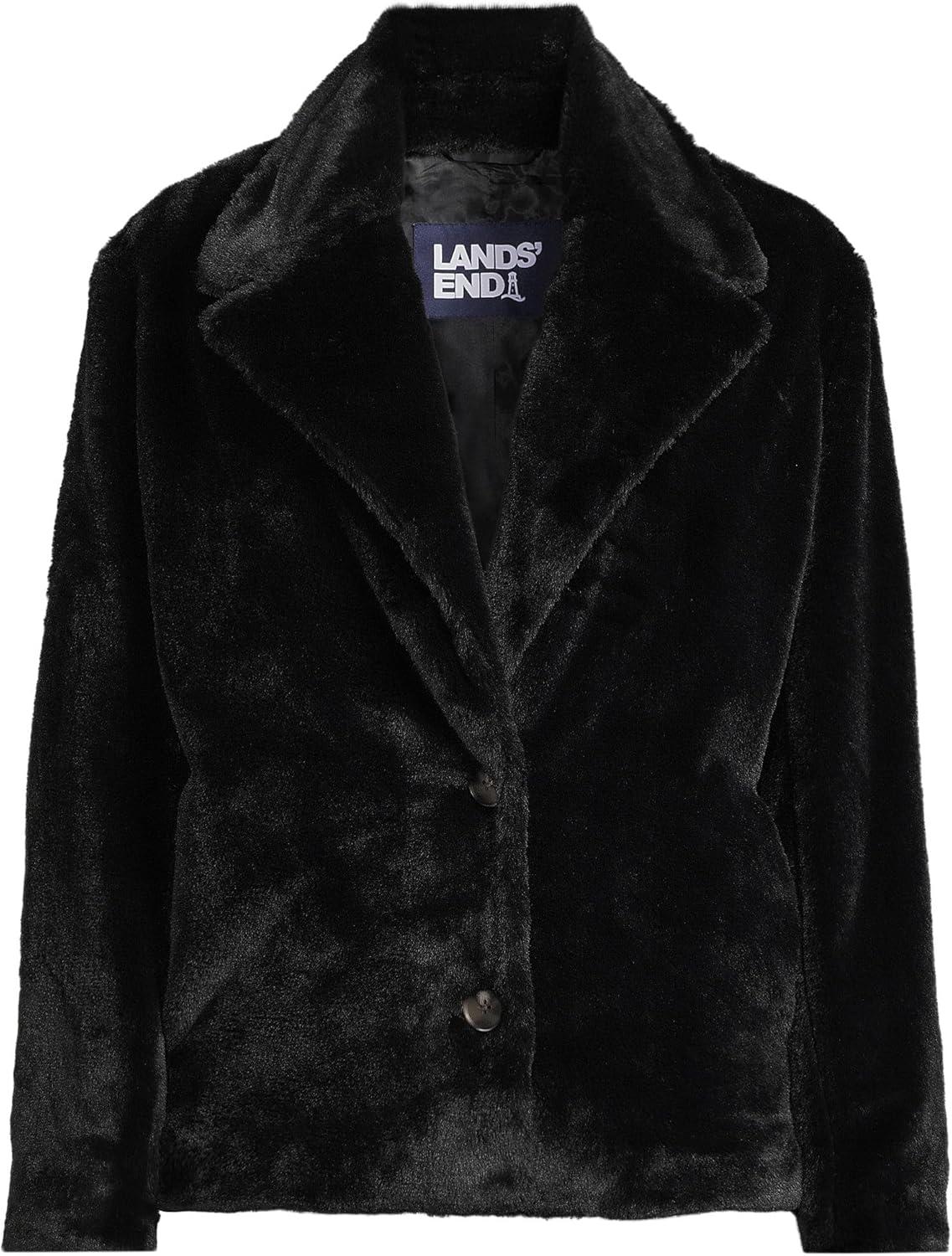 Lands’ End Women’s Faux Fur Jacket(Black)