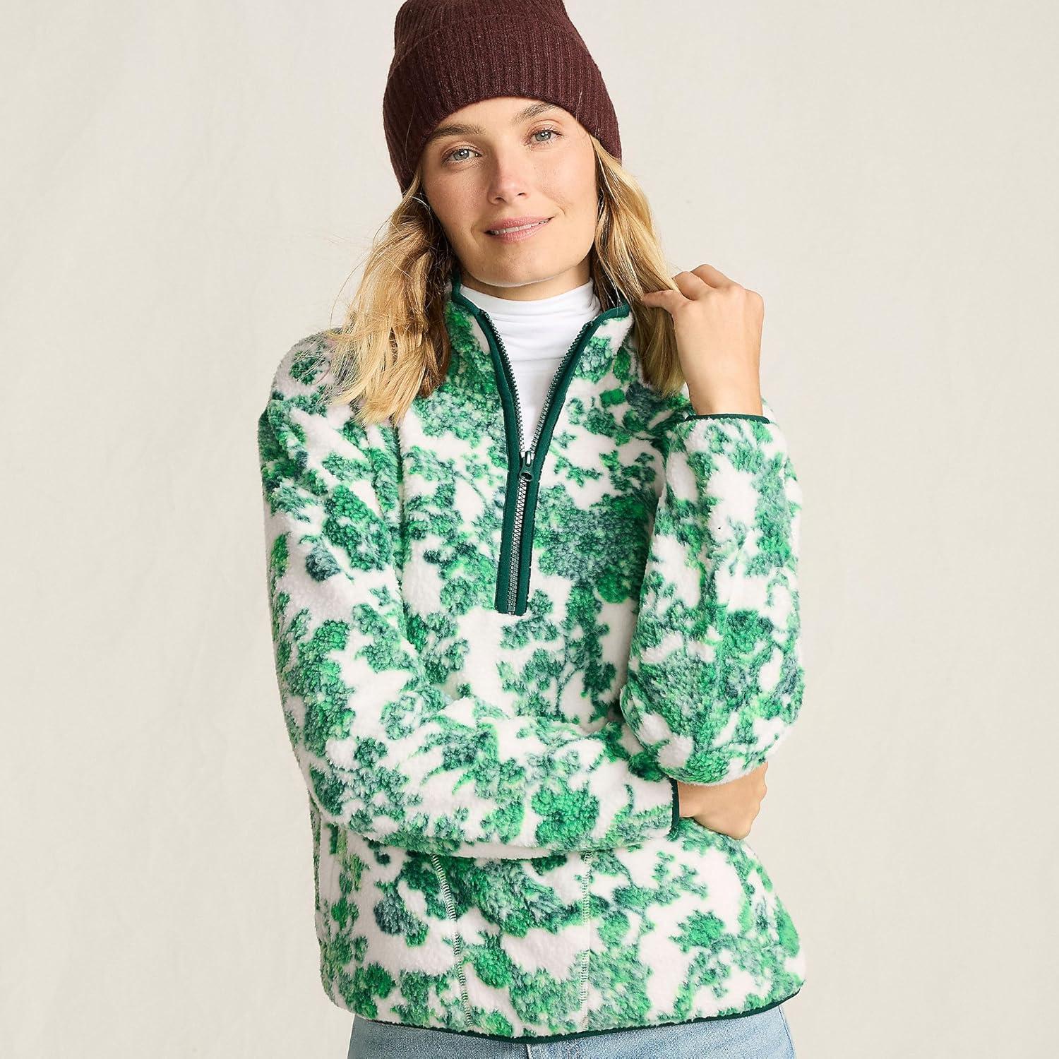 • Lands’ End Women’s Half Zip Cozy Sherpa Fleece Pullover(Emerald Floral)