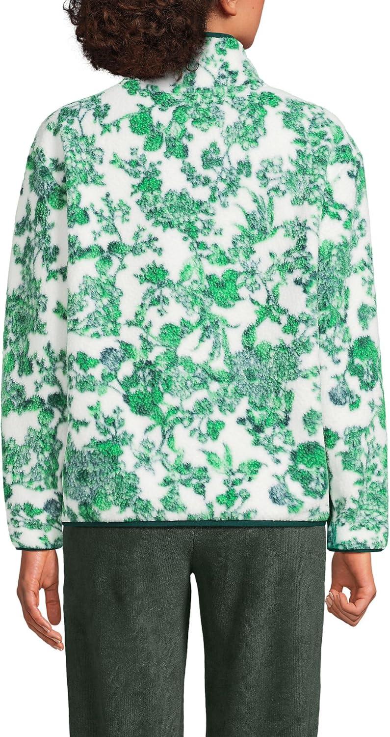 Lands’ End Women’s Half Zip Cozy Sherpa Fleece Pullover(Emerald Floral)