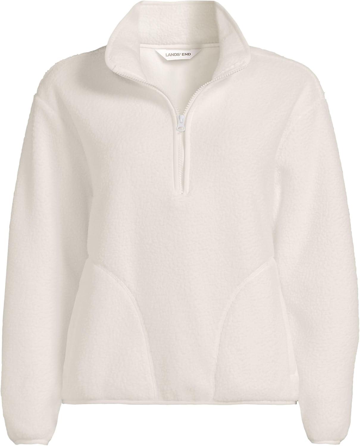 Lands’ End Women’s Half Zip Cozy Sherpa Fleece Pullover(Ivory)