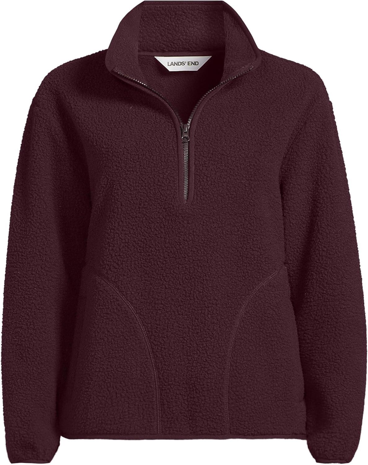 Lands’ End Women’s Half Zip Cozy Sherpa Fleece Pullover(Lush Burgundy)