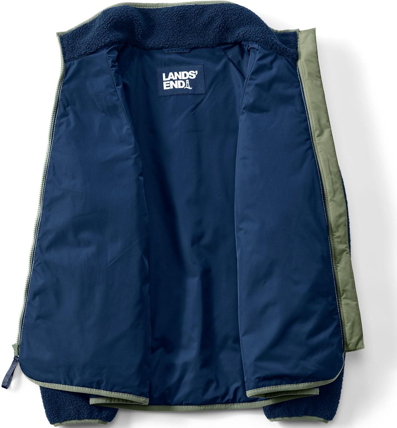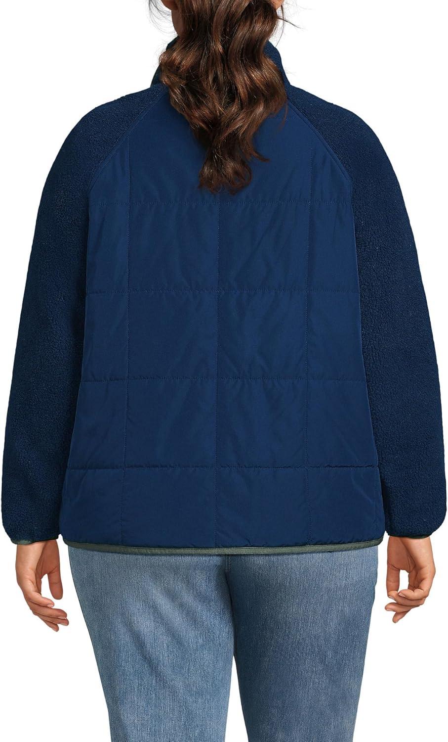 Lands’ End Women’s Mixed Media Sherpa Fleece Jacket(Deep Sea Navy/Spruce)