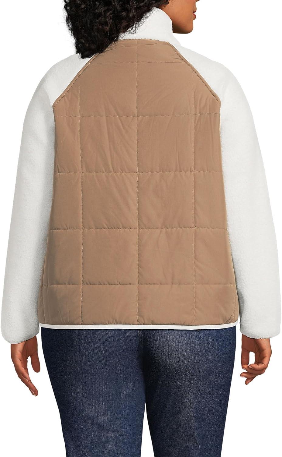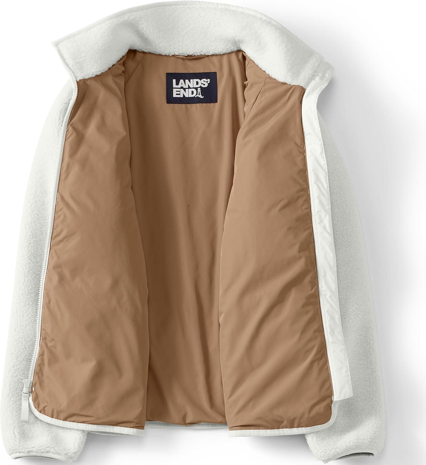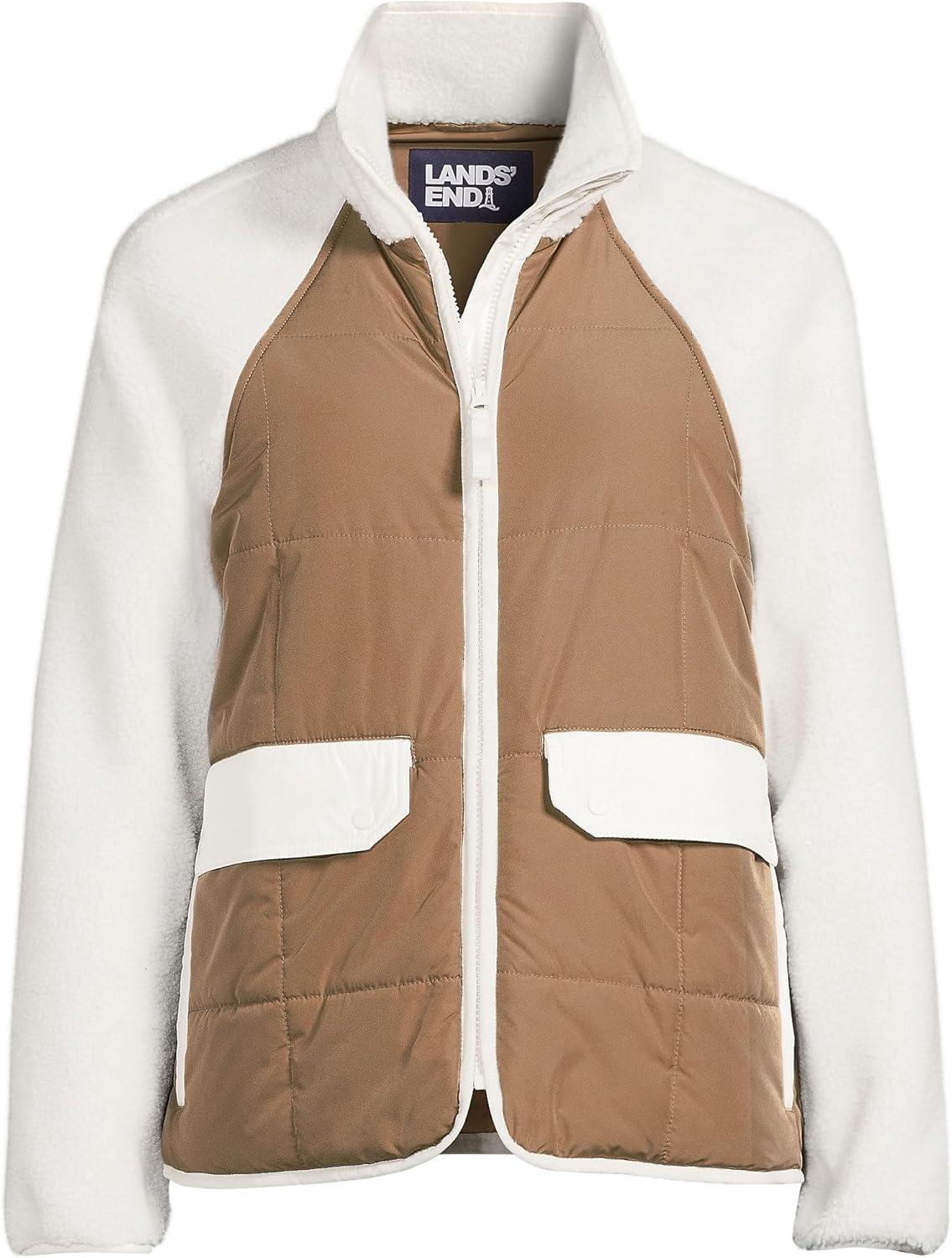 Lands’ End Women’s Mixed Media Sherpa Fleece Jacket(Ivory/Honey Beige)