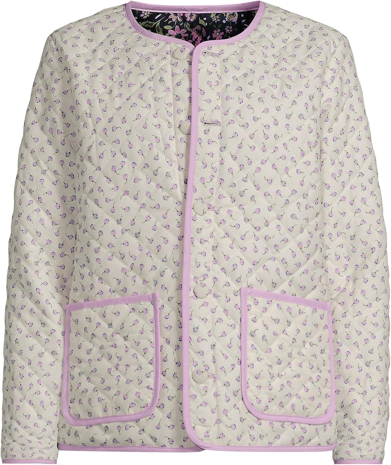 Lands’ End Women’s Quilted Reversible Jacket(Floral/Purple/Ivory)