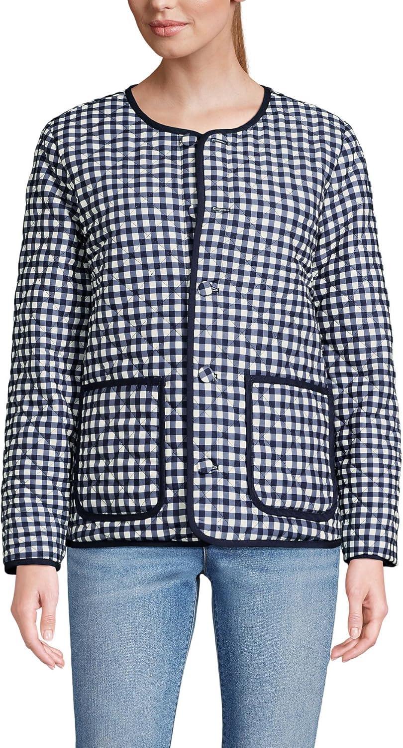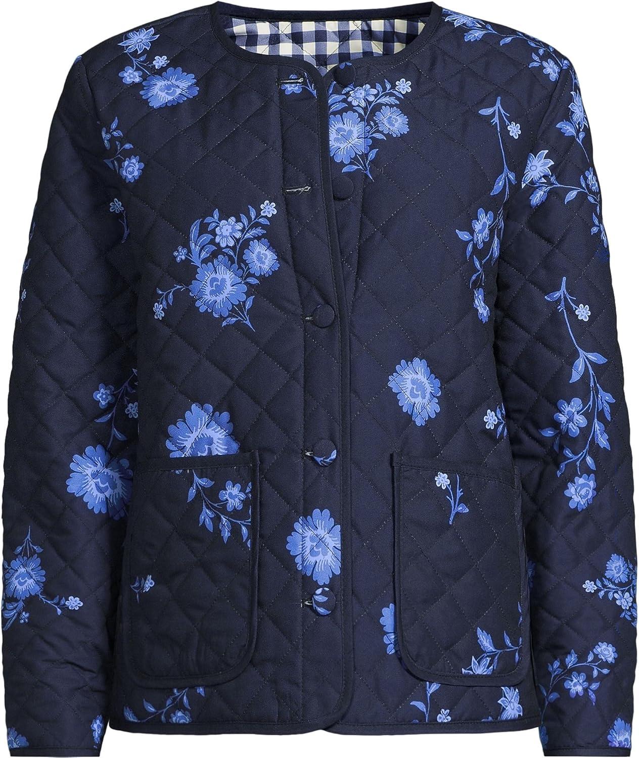 Lands’ End Women’s Quilted Reversible Jacket(Navy Floral/Navy Gingham)