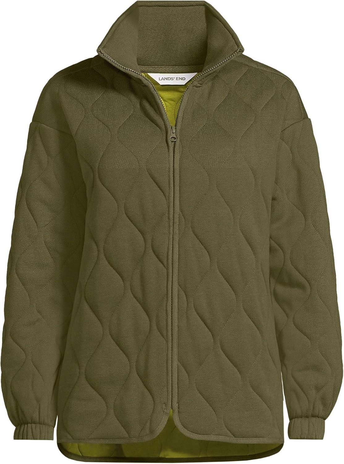 Lands’ End Women’s RainDefense Serious Sweats Quilted Full Zip Jacket(Olive Drab)
