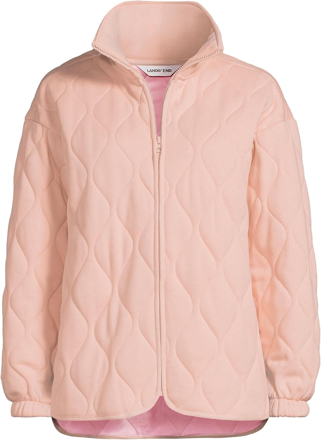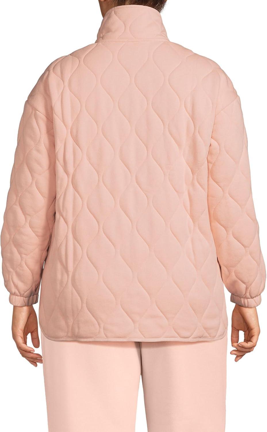 Lands’ End Women’s RainDefense Serious Sweats Quilted Full Zip Jacket(Soft Mineral Blush)