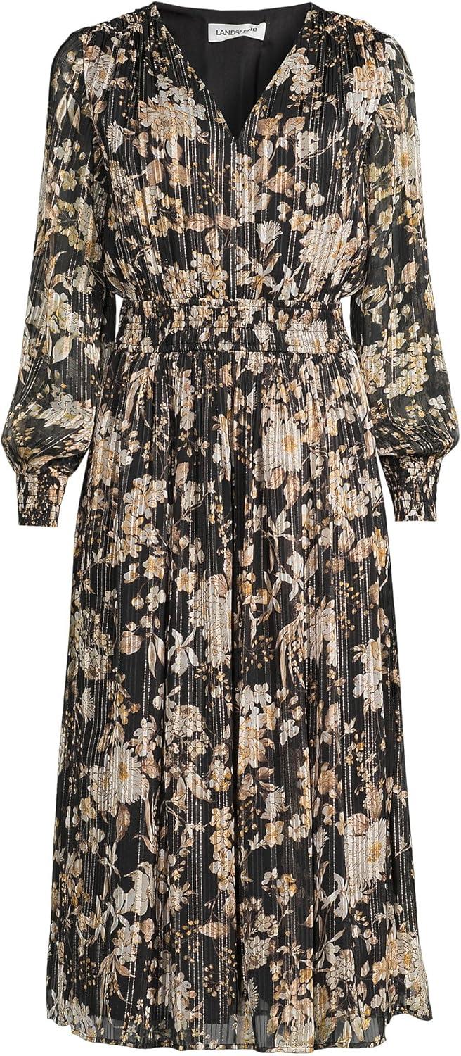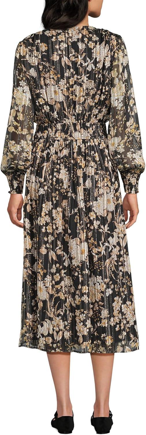 Lands’ End Women’s Lurex Shadow Stripe Midi Dress(Black/Pumice Stone Floral)