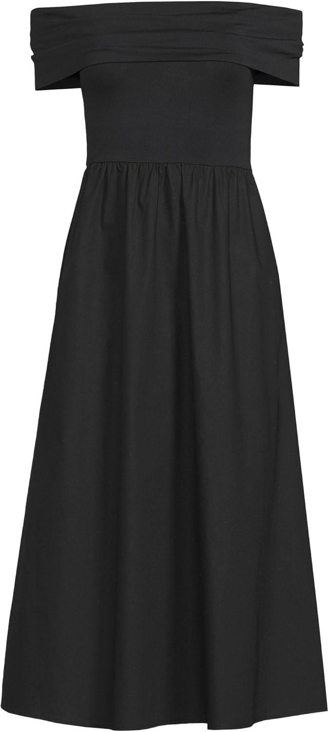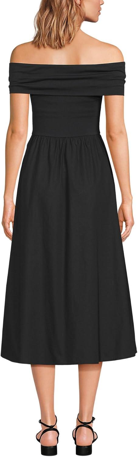 Lands’ End Women’s Off The Shoulder Slender Mixed Media Dress(Black)