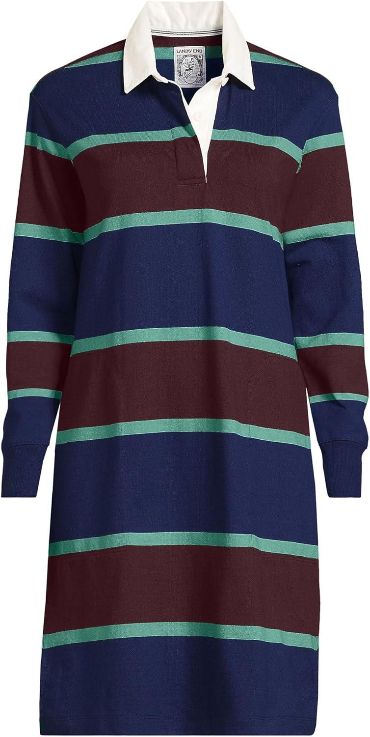 Lands’ End Women’s Rugby Dress(Deep Sea Navy/Burgundy Stripes)