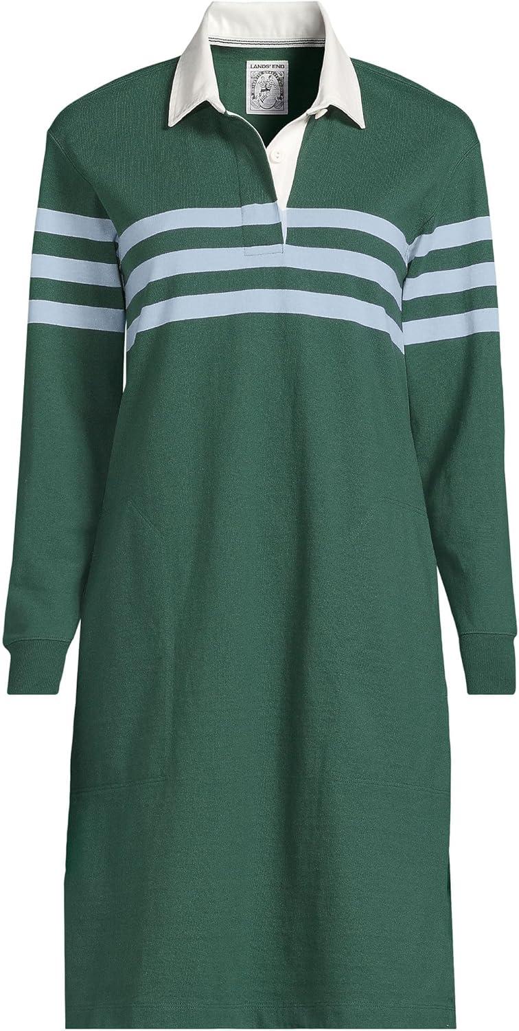 Lands’ End Women’s Rugby Dress(Norway Spruce Stripe)