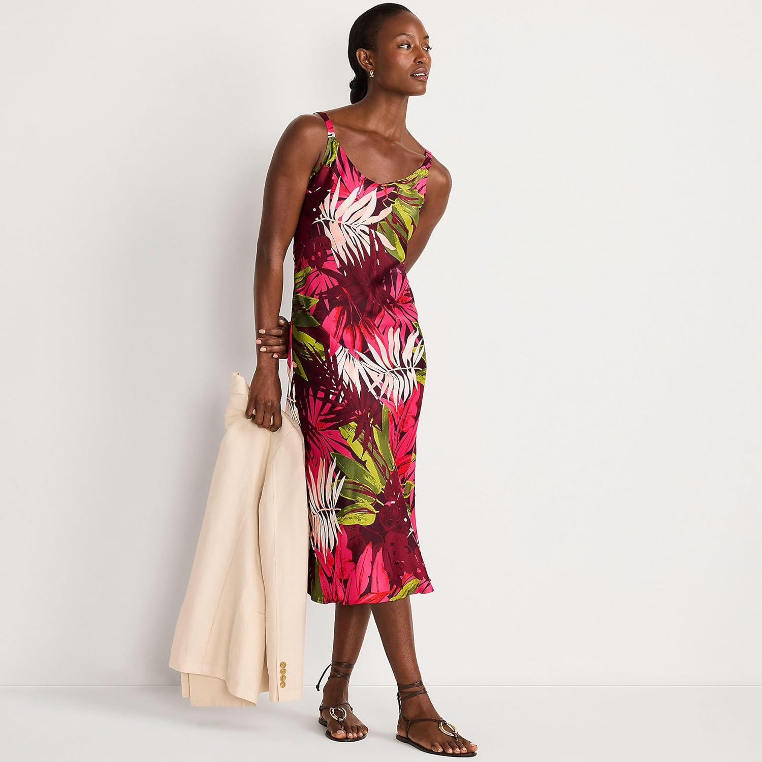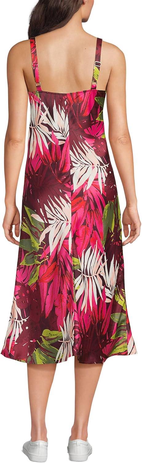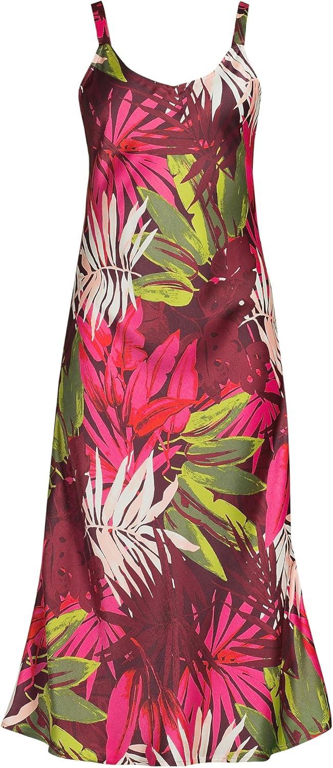 Lands’ End Women’s Satin Slip Dress(Rich Burgundy Tropical Palm)