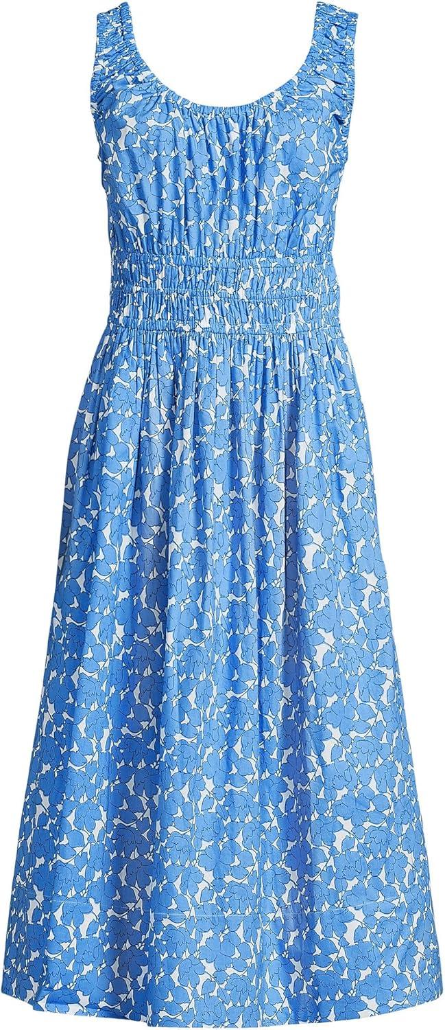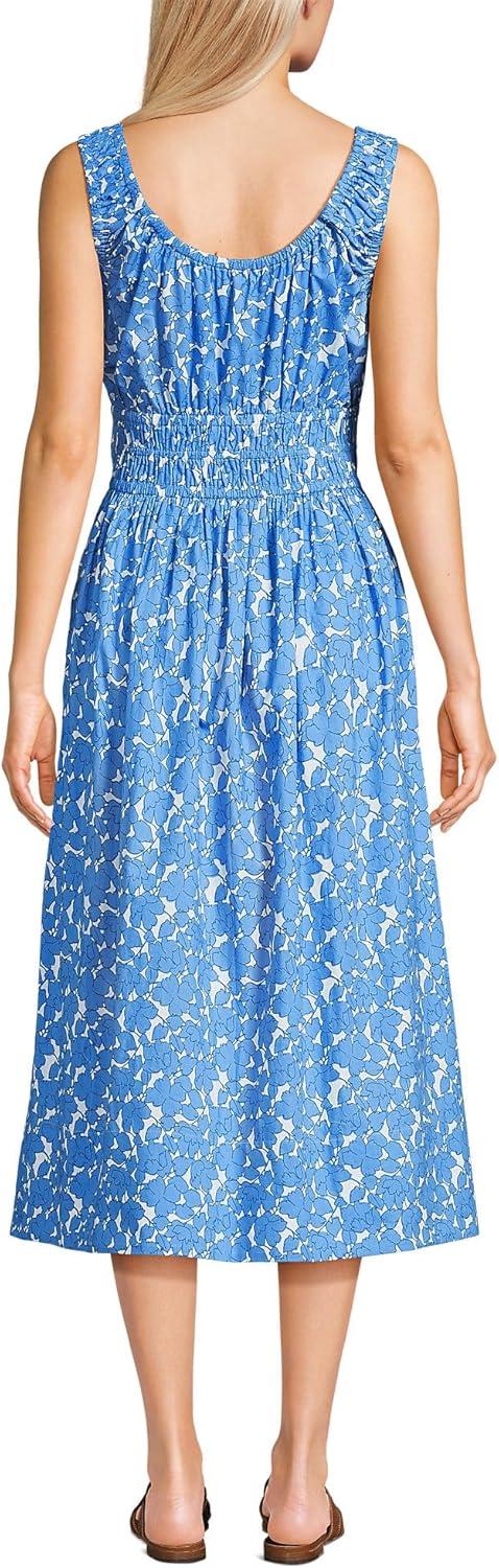 Lands’ End Women’s Sleeveless Poplin Smocked Midi Dress(Paradise Blue Tossed Floral)