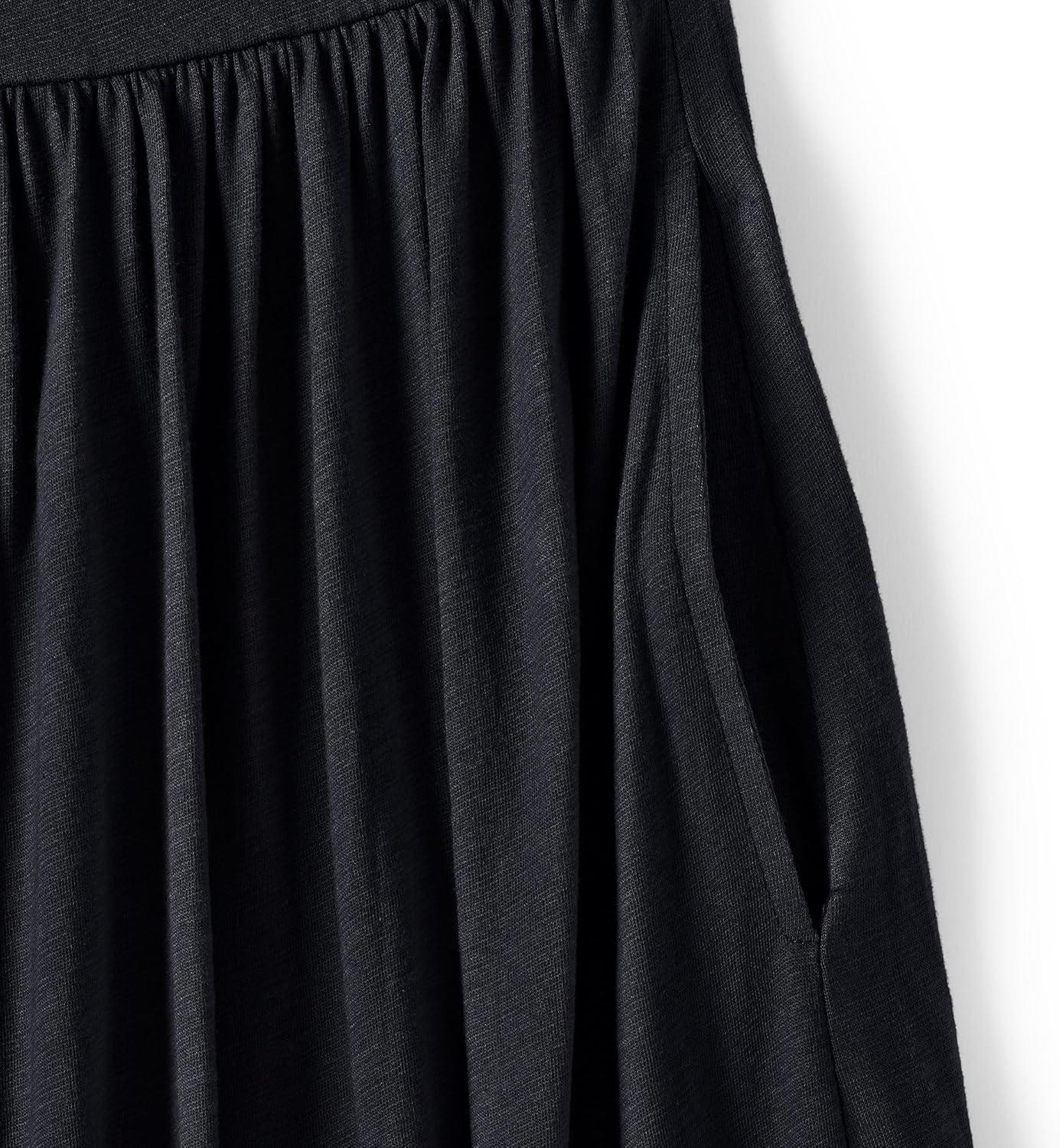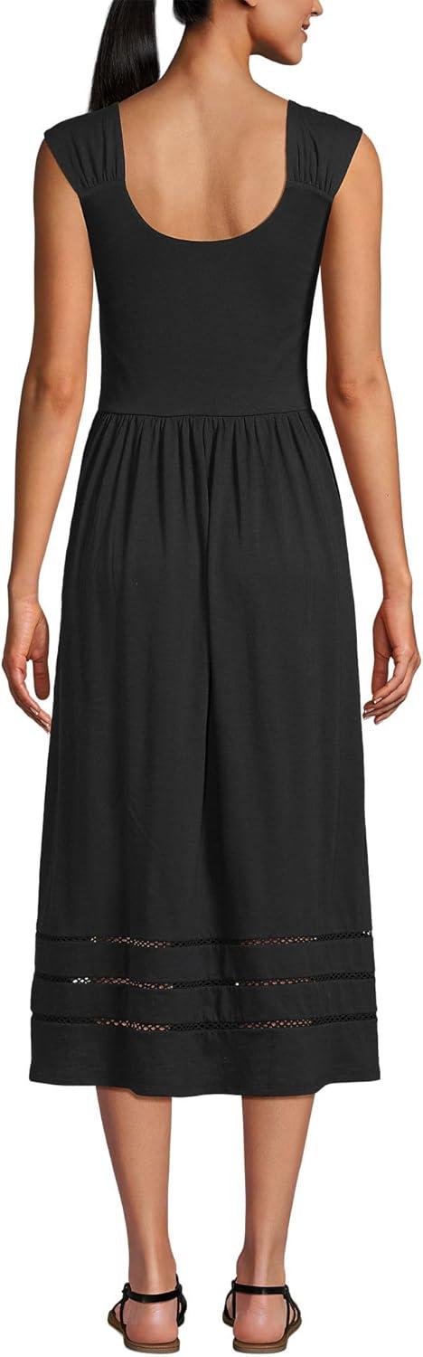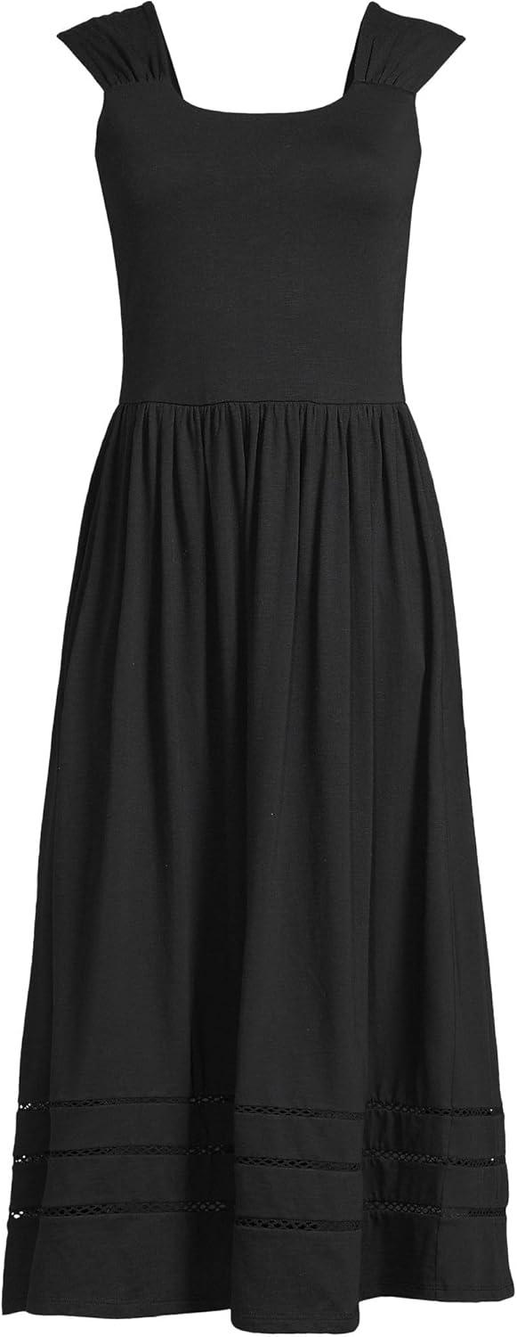 Lands’ End Women’s Slub Cap Sleeve Shirred Skirt Midi Dress(Black)