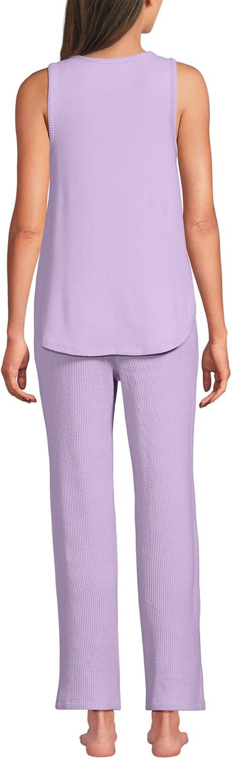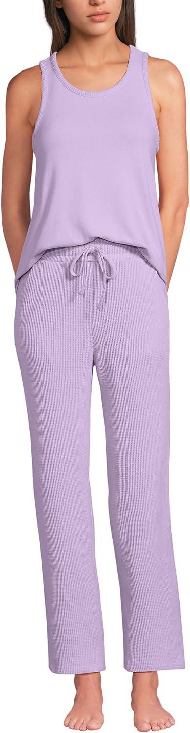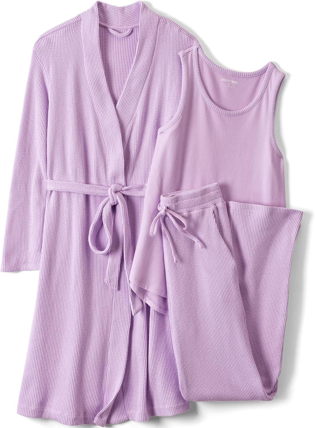 Lands’ End Women’s Brushed Cozy Waffle Jersey 3 Piece Pajama Set – Tank Top Pant and Robe(Whisper Lilac)