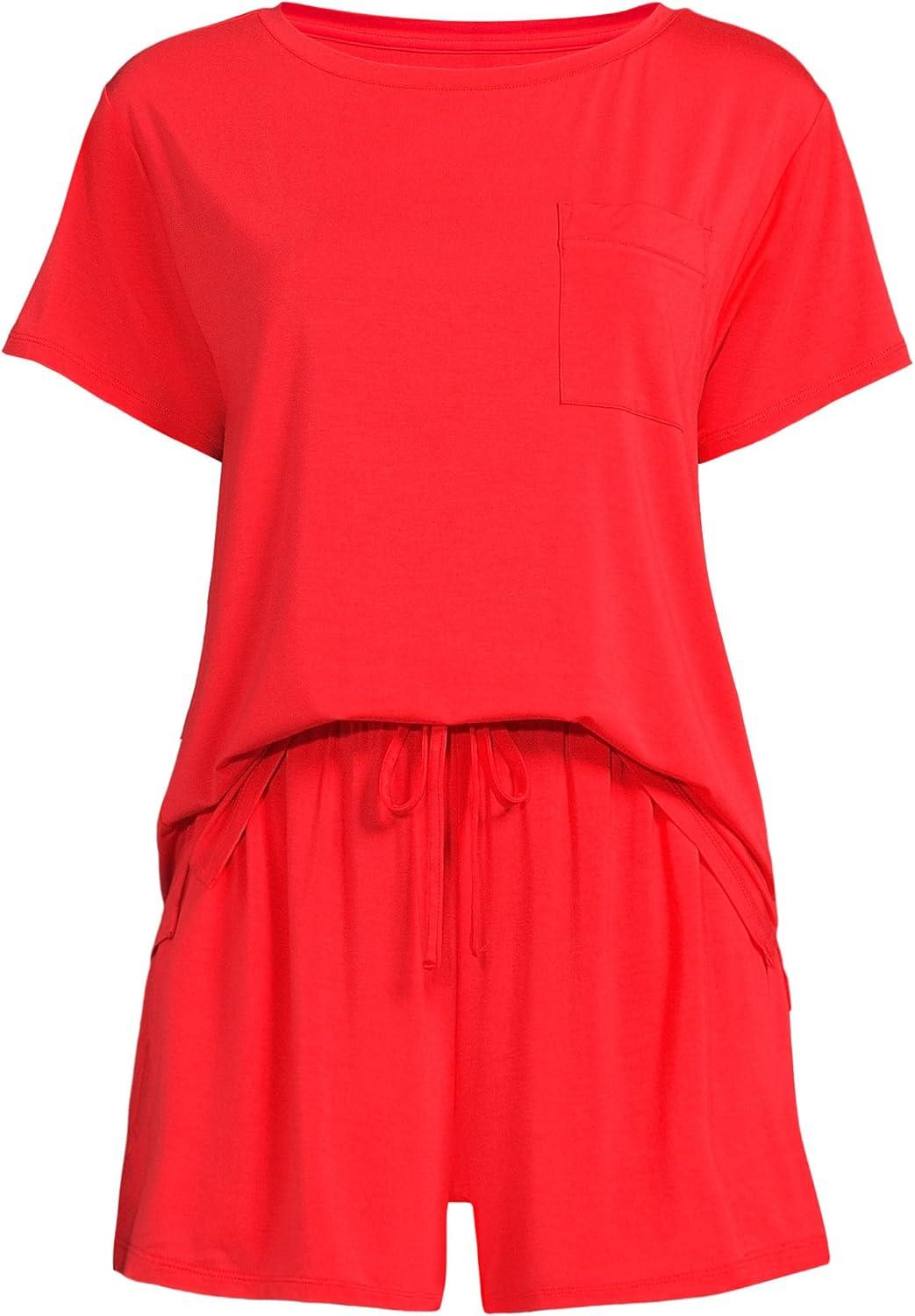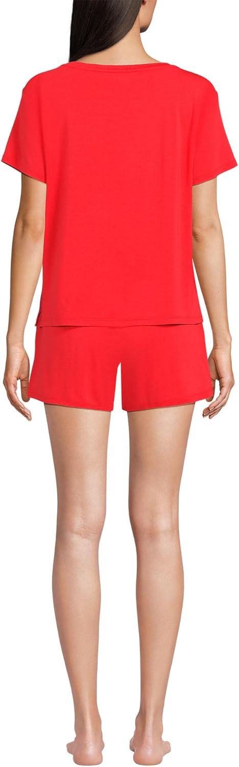 Lands’ End Women’s Cooling 2 Piece Pajama Set – Short Sleeve Tee and Shorts(Coral Red)