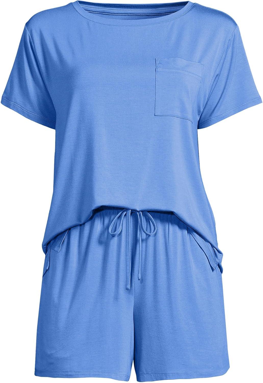 Lands’ End Women’s Cooling 2 Piece Pajama Set – Short Sleeve Tee and Shorts(Crisp Blue)