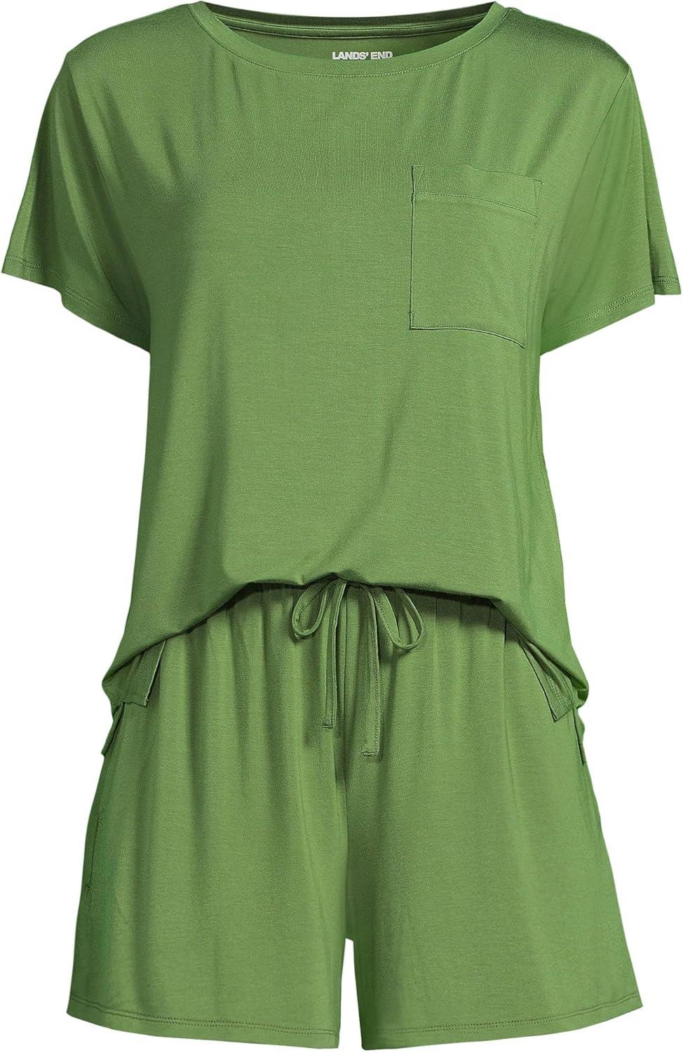 Lands’ End Women’s Cooling 2 Piece Pajama Set – Short Sleeve Tee and Shorts(Valley Green)
