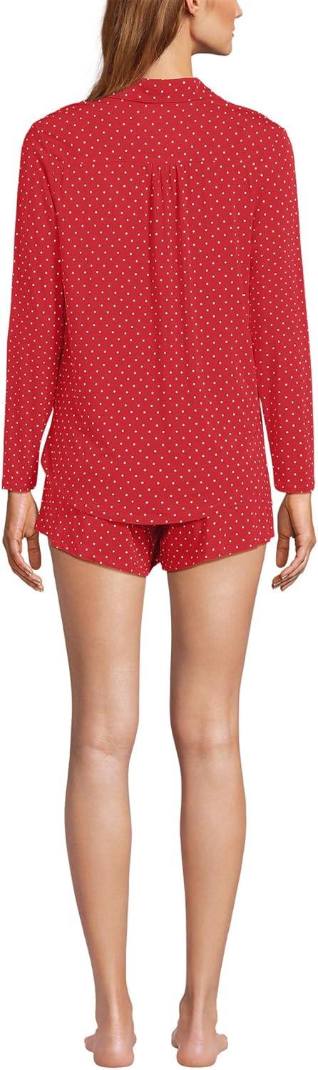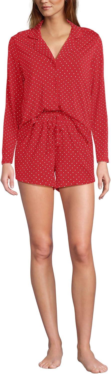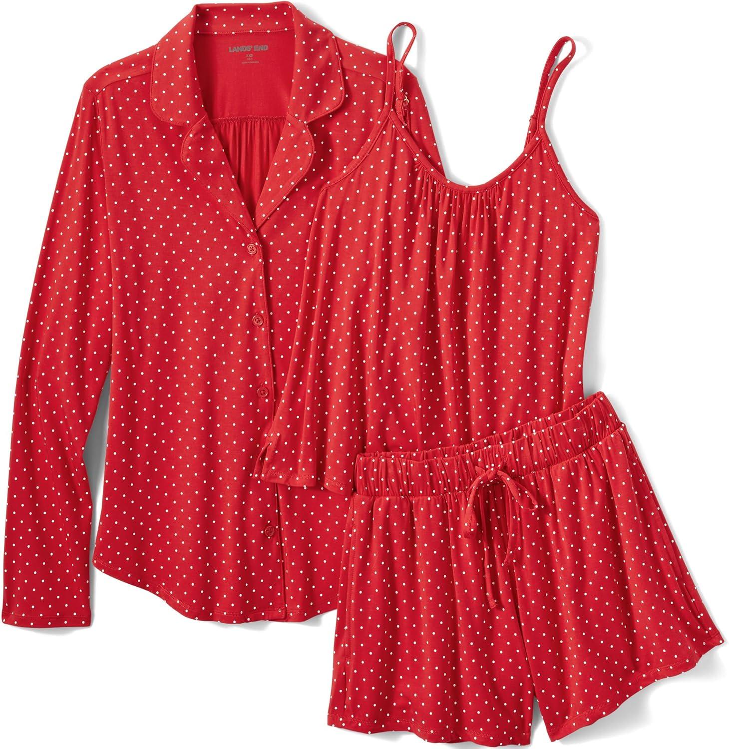 Lands’ End Women’s Cooling 3 Piece Pajama Set – Long Sleeve Top Cami and Shorts(Compass Red Pin Dot)