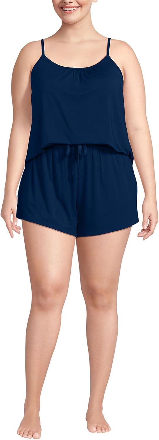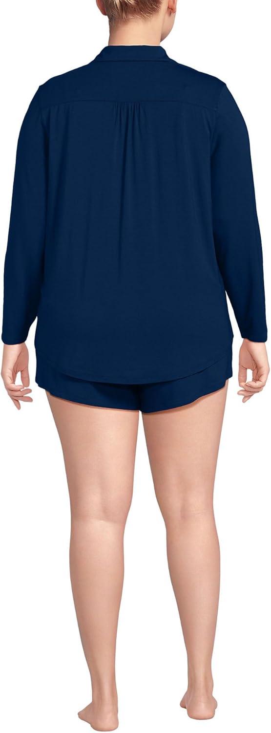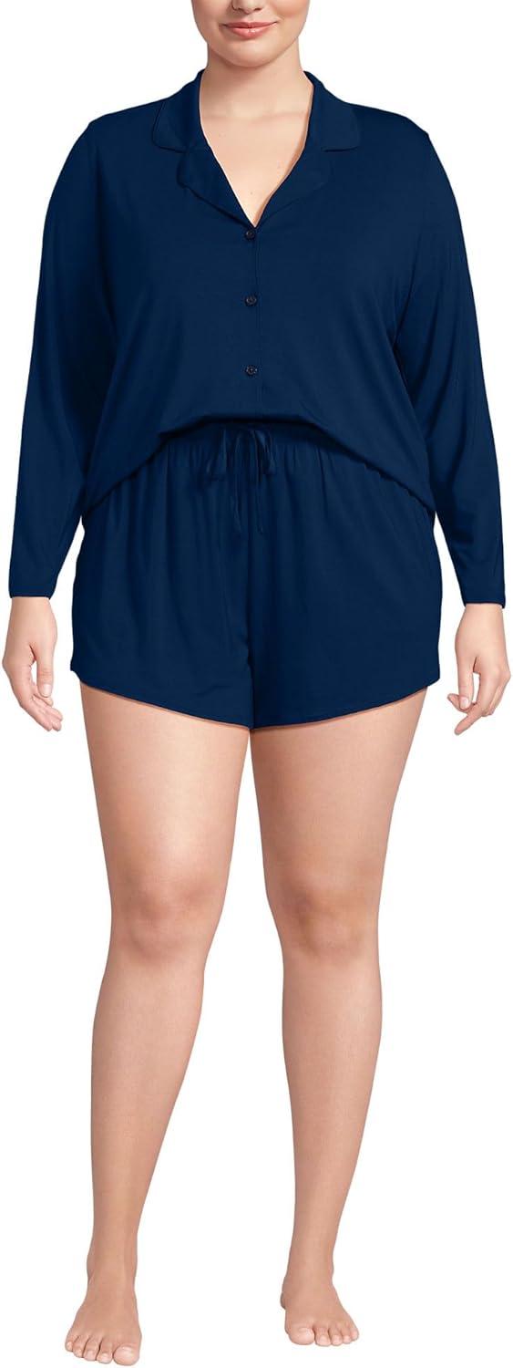 Lands’ End Women’s Cooling 3 Piece Pajama Set – Long Sleeve Top Cami and Shorts(Deep Sea Navy)