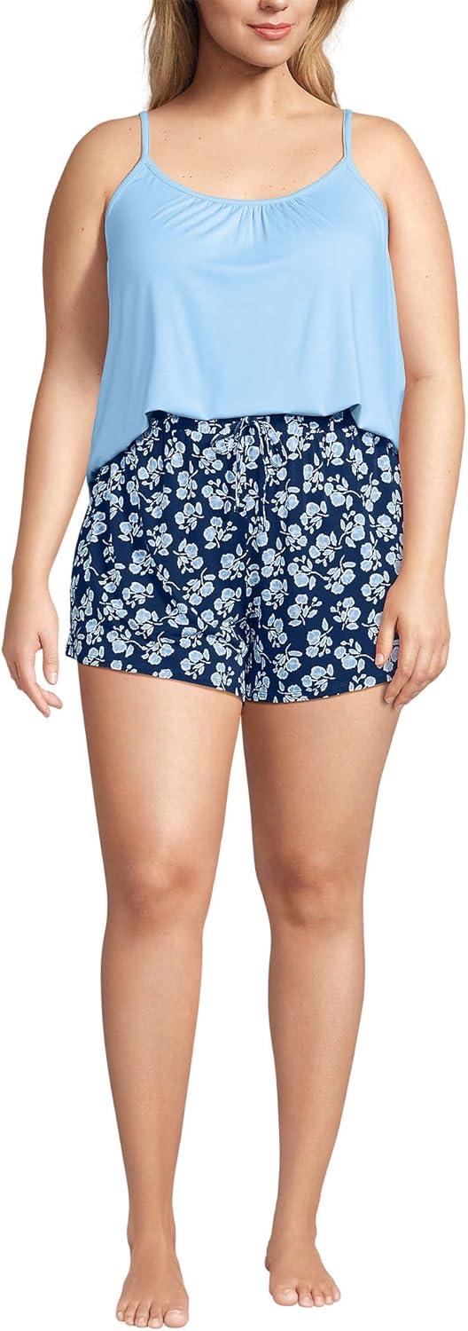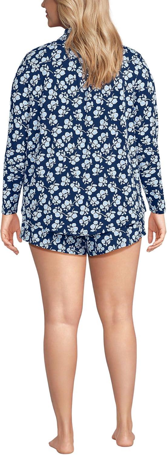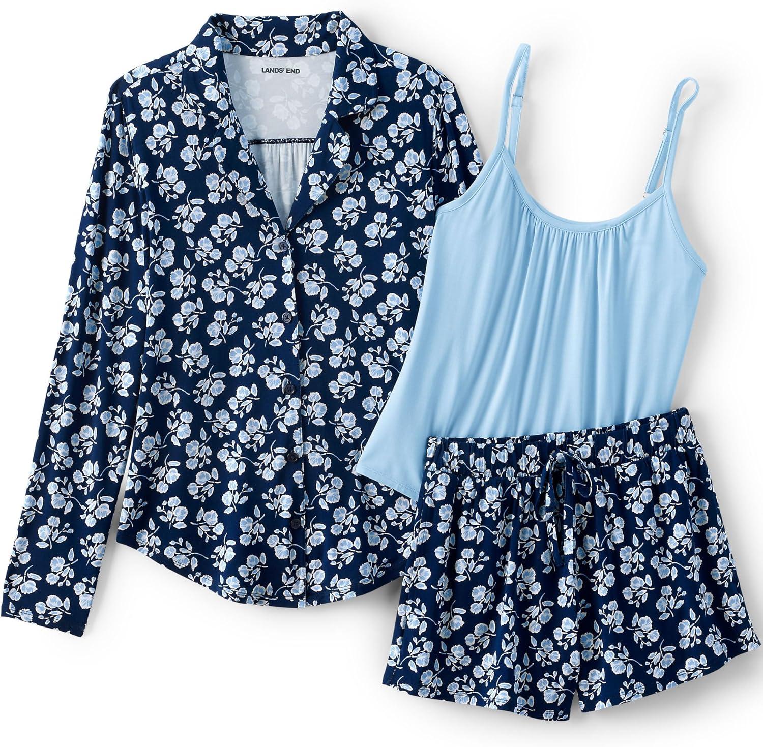 Lands’ End Women’s Cooling 3 Piece Pajama Set – Long Sleeve Top Cami and Shorts(Deep Sea Navy Blooms)