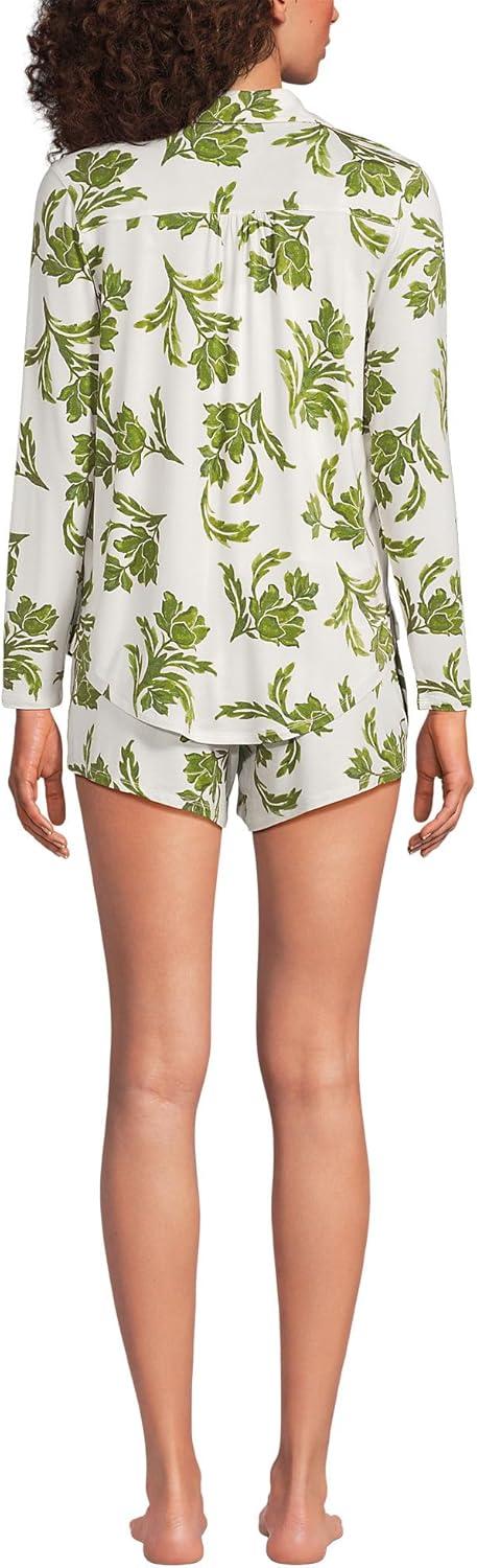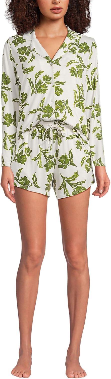 Lands’ End Women’s Cooling 3 Piece Pajama Set – Long Sleeve Top Cami and Shorts(Ivory/Green Elegant Floral)