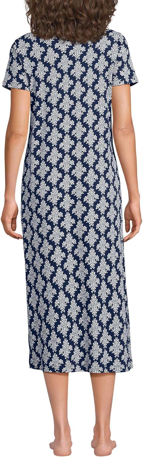 Lands’ End Women’s Cotton Short Sleeve Midcalf Nightgown(Deep Sea Navy/Ivory Floral)