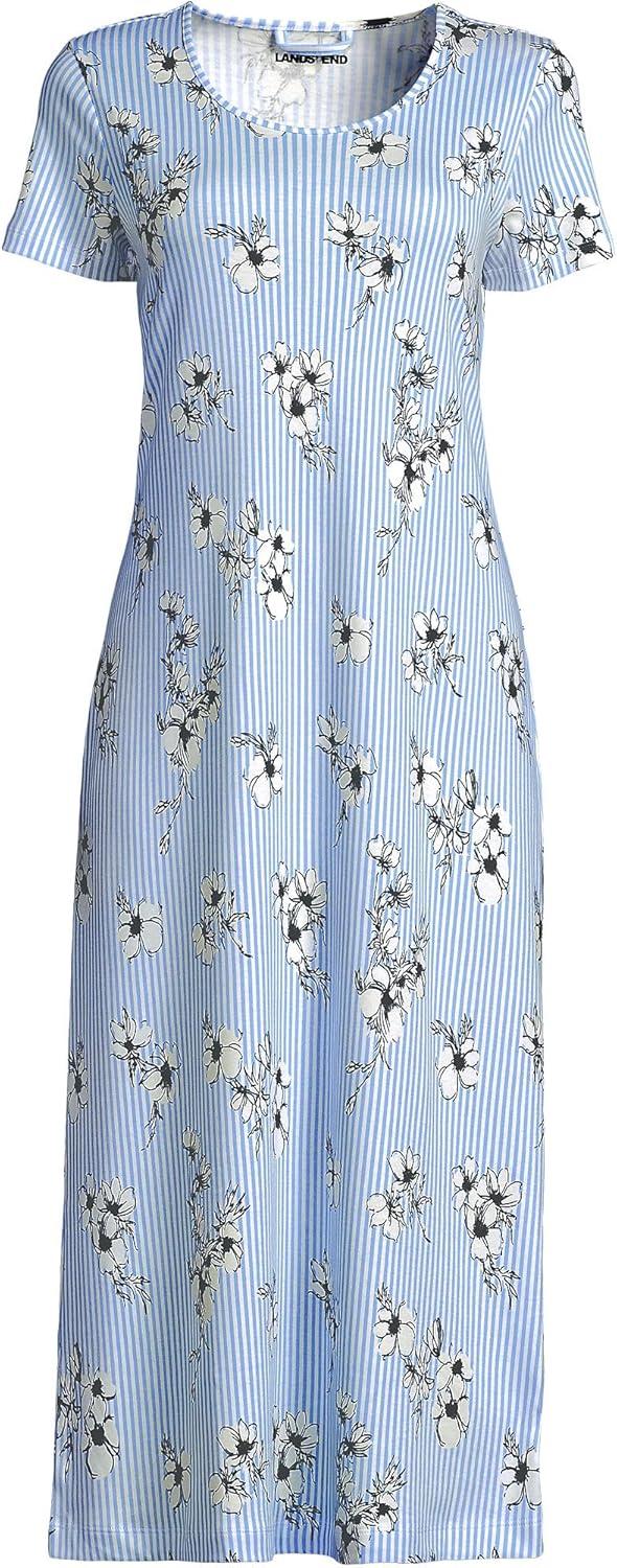 Lands’ End Women’s Cotton Short Sleeve Midcalf Nightgown(Ivory/Light Sea Blue Floral)