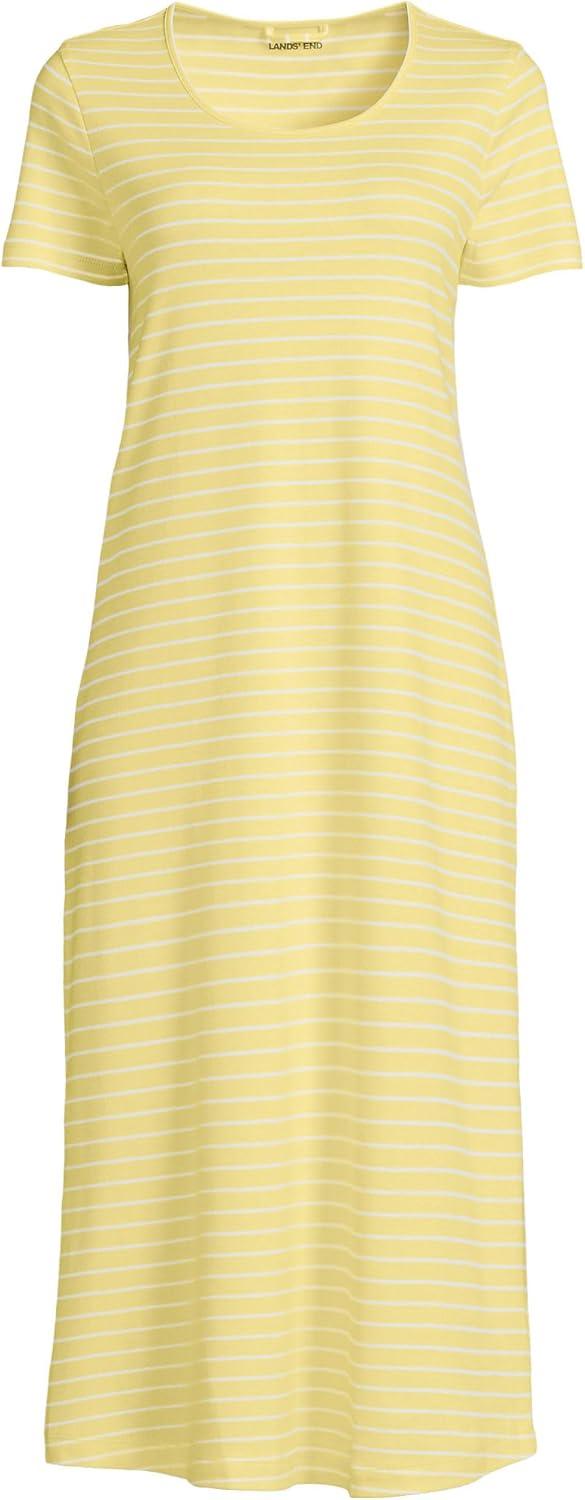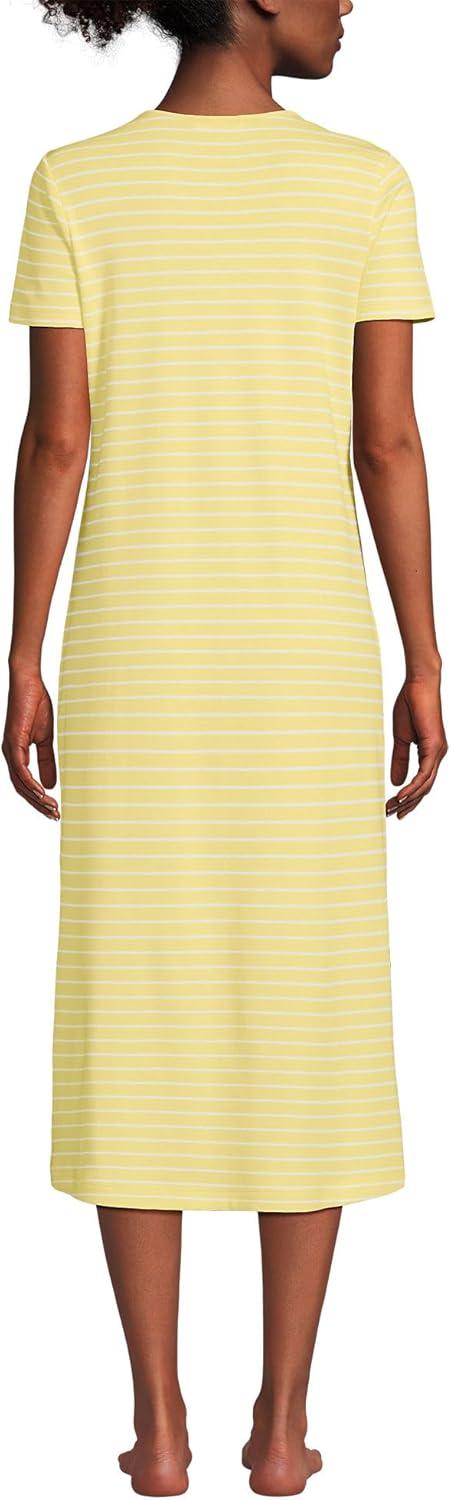 Lands’ End Women’s Cotton Short Sleeve Midcalf Nightgown(Yellow Bliss Simple Stripe)
