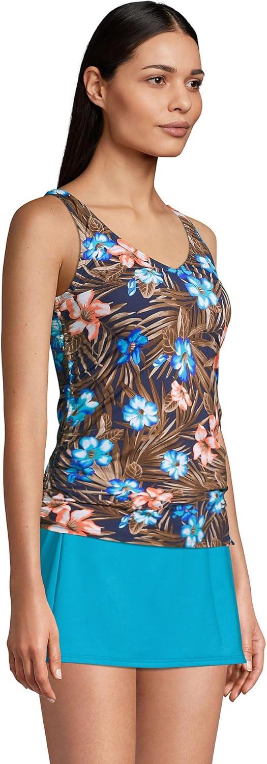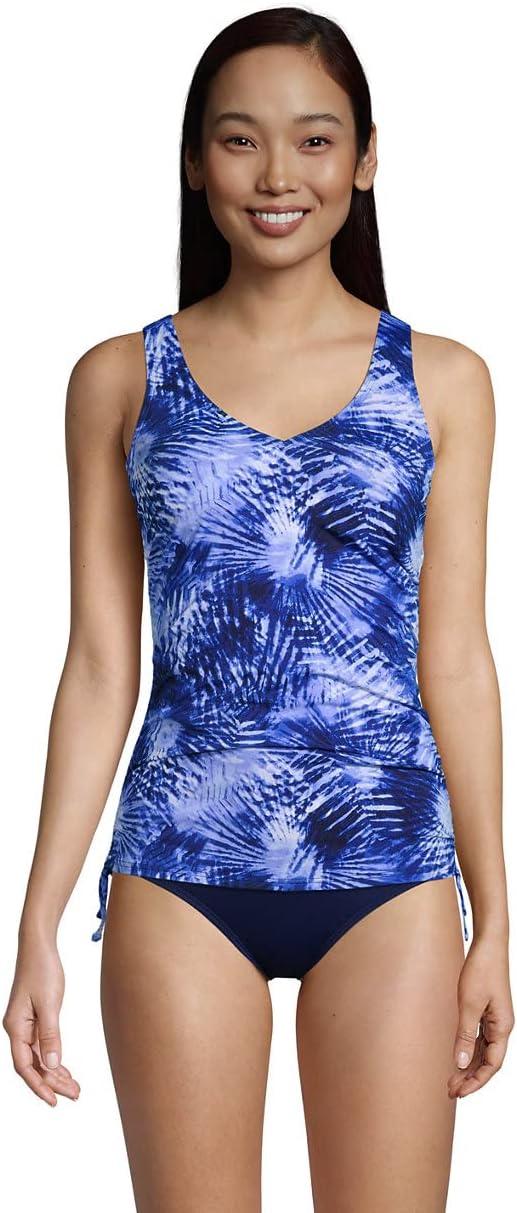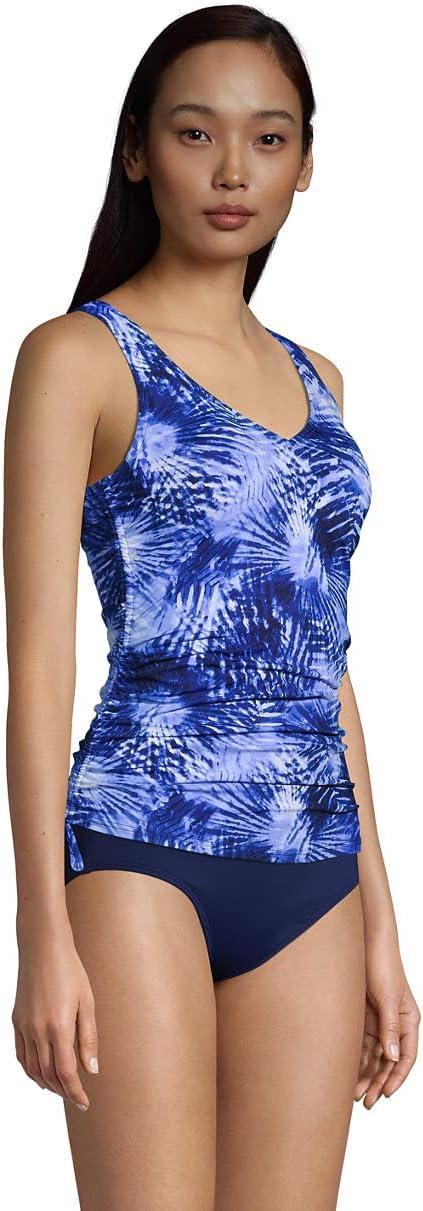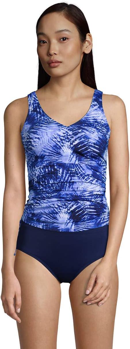Lands’ End Chlorine Resistant Underwire Tankini Swimsuit Top(Deep Sea Navy Tie Dye Palm)
